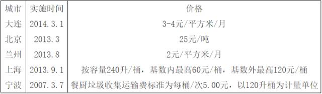 我國部分城市餐廚垃圾處理收費標(biāo)準(zhǔn)