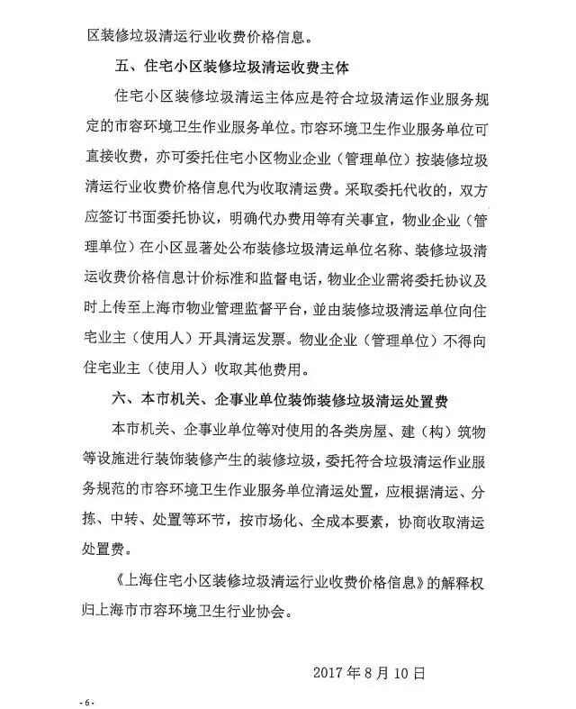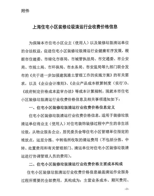 《上海市住宅小區(qū)裝修垃圾清運(yùn)行業(yè)收費(fèi)價格信息》全文內(nèi)容如下: