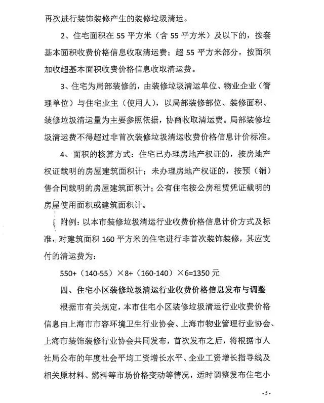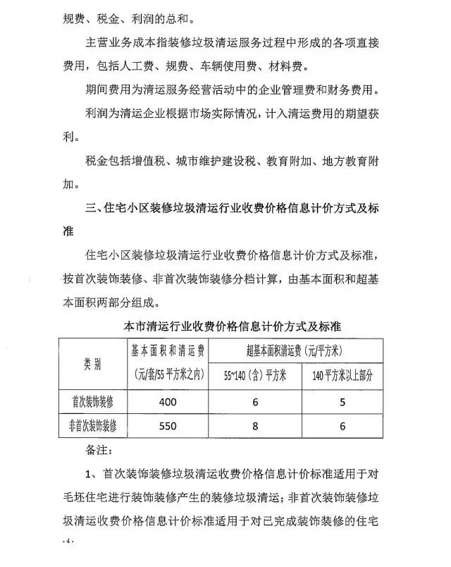 8月17日,《上海住宅小區(qū)裝修垃圾清運(yùn)行業(yè)收費(fèi)價格信息》(下稱《價格信息》)公布,《價格信息》明確了住宅小區(qū)裝修垃圾清運(yùn)行業(yè)收費(fèi)價格信息的定義,明確收費(fèi)價格主要成本構(gòu)成、計價方式、標(biāo)準(zhǔn)以及收費(fèi)主體。住宅小區(qū)裝修垃圾清運(yùn),根據(jù)首次和非首次裝飾裝修、基本面積等標(biāo)準(zhǔn)計價,此外,機(jī)關(guān)、企事業(yè)單位裝飾裝修垃圾清運(yùn)處置費(fèi)將根據(jù)清運(yùn)、分揀等環(huán)節(jié),按市場化、全成本要素,協(xié)商收取。