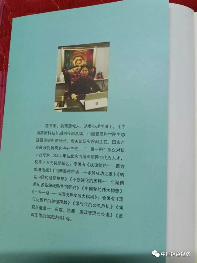 陳玉榮,消費心理學博士、MBA工商管理碩士、經(jīng)濟學碩士,曾在原國家主席李先念同志秘書、國家統(tǒng)計局原局長李成瑞同志身邊從事過私人助理工作;在國家計委對外經(jīng)濟研究所、商務部國際經(jīng)濟貿(mào)易合作研究院、北京大學城市規(guī)劃研究所等從事過研究和頂層設計規(guī)劃等工作;在中國企業(yè)報、中國信息報和中國投資促進雜志擔任過副主編工作;在著名民營企業(yè)匹夫品牌管理集團、珍貝集團、聯(lián)想集團、國度投資集團等從事總裁助理兼企劃部長工作等。2004年被北京市組織部評為優(yōu)秀人才稱號?,F(xiàn)任全國三農(nóng)調(diào)研中心副主任、國家產(chǎn)業(yè)轉移促進中心高級顧問等。出版專著作品有《秋涼猶熱:西方經(jīng)濟透視》、《理想與改革:社會主義的改革歷程》、《不斷進化的經(jīng)營:全聚德集團多品牌戰(zhàn)略營銷》、《轉型中國的路徑抉擇》、《中國夢的偉大構想》、《一帶一路:中國統(tǒng)籌發(fā)展大棋局》、《藍色跨越:中國海洋強國的生態(tài)邏輯》等;出版合著作品有:《集聚正能量:反腐、防腐、廉政管理三步走》、《現(xiàn)代化進程的跨越:貧富差距與犯罪率》、《微時代的危機公關》、《政府反腐工作的加減法則》等書,發(fā)表關于綠色經(jīng)濟、政治、貿(mào)易、投資、管理、營銷、戰(zhàn)略規(guī)劃等論文300多篇。新近出版的《一帶一路:中國統(tǒng)籌發(fā)展大棋局》一書被國家新聞出版署列入重大選題備案,歡迎關注。