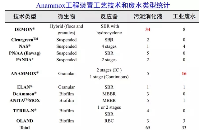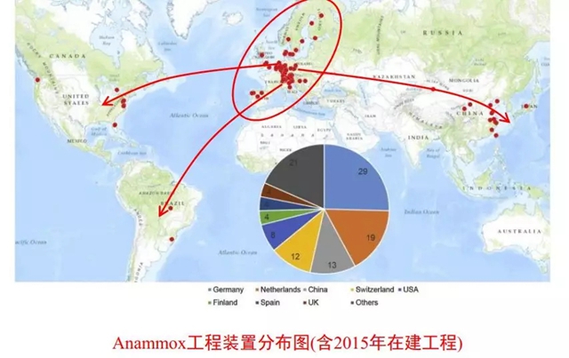 目前,Anammox主要用于污泥消化液和含高氨氮工業(yè)廢水的處理,且技術(shù)發(fā)展已較為成熟,在美國、德國、瑞士等有較多的應(yīng)用案例。