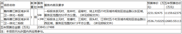 江西省贛州蓉江新區(qū)城鄉(xiāng)環(huán)衛(wèi)一體化項(xiàng)目發(fā)布中標(biāo)結(jié)果公告,龍馬環(huán)衛(wèi)和中聯(lián)環(huán)境分獲一、二標(biāo)段。其中,一標(biāo)段中標(biāo)金額達(dá)1.08億,二標(biāo)段中標(biāo)金額達(dá)1.15億,項(xiàng)目總金額達(dá)2.23億。