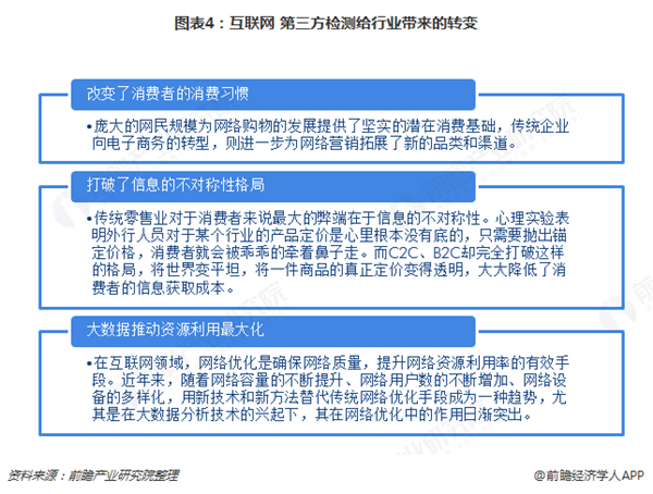 踏著互聯(lián)網(wǎng)發(fā)展的春風(fēng),我國(guó)第三方檢測(cè)機(jī)構(gòu)也開始互聯(lián)網(wǎng)化轉(zhuǎn)型之路,積極利用大數(shù)據(jù)推動(dòng)資源利用的最大化,擴(kuò)大消費(fèi)者對(duì)于第三方檢測(cè)行業(yè)的認(rèn)知,從而擴(kuò)大下游需求的增長(zhǎng)。