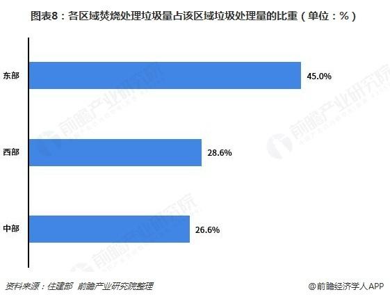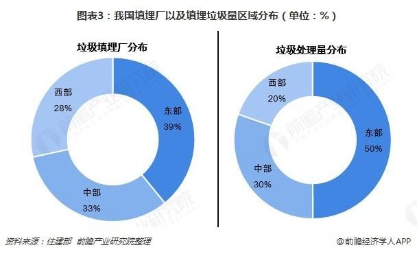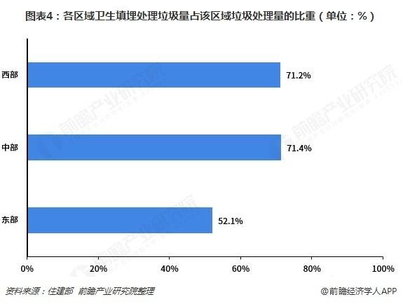 全國垃圾填埋走東低中西高的趨勢