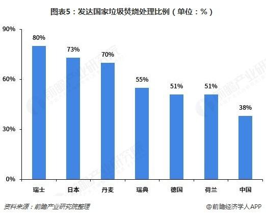 但與發(fā)達國家相比,我國的垃圾焚燒處理比例較低。瑞士垃圾焚燒處理比例高達80%,日本和丹麥分別為73%、70%,而中國僅為38%。在城鎮(zhèn)化的不斷推進和垃圾“無害化、減量化、資源化”的要求下垃圾焚燒將是大勢所趨。
