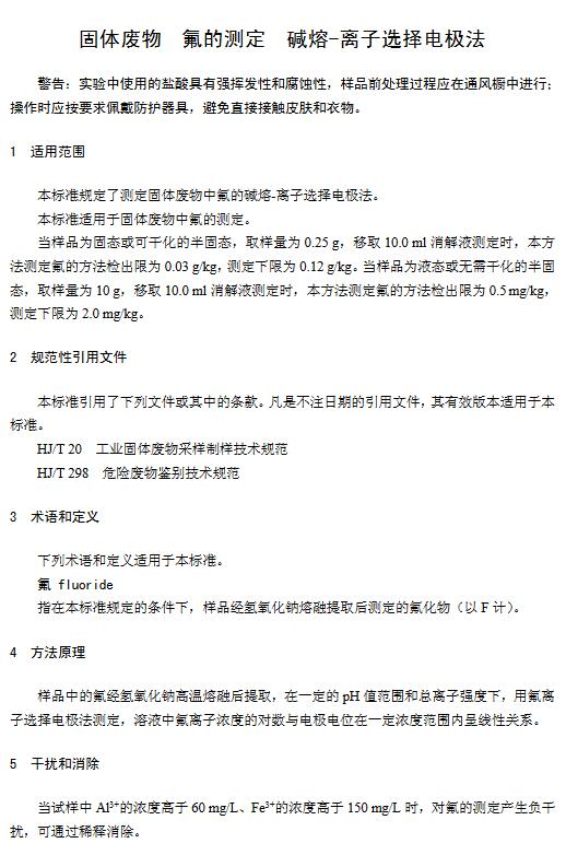 為貫徹《中華人民共和國(guó)環(huán)境保護(hù)法》和《中華人民共和國(guó)固體廢物污染環(huán)境防治法》,保護(hù)生態(tài)環(huán)境,保障人體健康,規(guī)范固體廢物中氟的測(cè)定方法,制定本標(biāo)準(zhǔn)。本標(biāo)準(zhǔn)規(guī)定了測(cè)定固體廢物中氟的堿熔-離子選擇電極法。本標(biāo)準(zhǔn)為首次發(fā)布。
