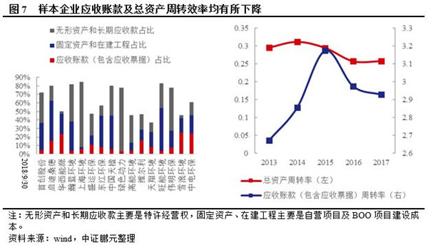 PPP投資大量擴(kuò)張后企業(yè)資產(chǎn)周轉(zhuǎn)效率明顯下降,應(yīng)收賬款對企業(yè)的資金占用日益嚴(yán)重。PPP模式推行初期,業(yè)內(nèi)企業(yè)投資積極性較高,部分企業(yè)擴(kuò)張較為激進(jìn),融資沒能及時(shí)跟進(jìn),大量在建項(xiàng)目投資進(jìn)度滯后,無法如期完工投入運(yùn)營產(chǎn)生效益,企業(yè)資產(chǎn)周轉(zhuǎn)效率明顯下降。2019年隨著大量項(xiàng)目進(jìn)入運(yùn)營期,地方政府需要按效支付的費(fèi)用或補(bǔ)貼規(guī)模上升,財(cái)政承受能力將受到真正的考驗(yàn),部分財(cái)政實(shí)力較弱地區(qū)的項(xiàng)目回款及時(shí)性可能下降,中證鵬元預(yù)計(jì)短期內(nèi)業(yè)內(nèi)企業(yè)應(yīng)收賬款占用資金情況不會有明顯改善,融資能力仍然是影響業(yè)內(nèi)企業(yè)發(fā)展的重要因素。