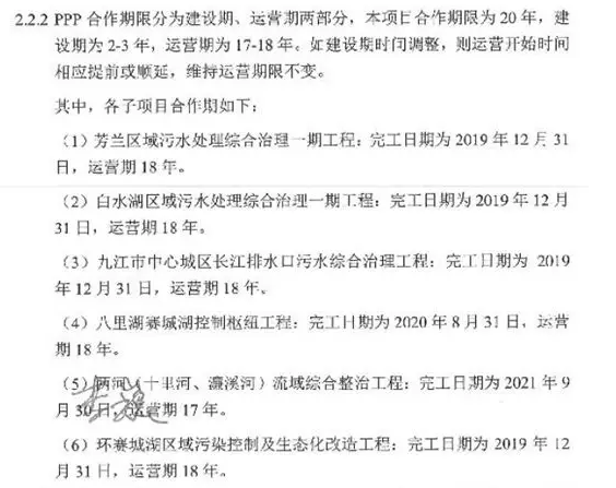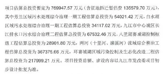 九江市中心城區(qū)水環(huán)境系統(tǒng)綜合治理一期項(xiàng)目總投資約77億元,采用PPP模式運(yùn)作,合作期為20年,其中建設(shè)期2-3年,主要建設(shè)內(nèi)容包括芳蘭區(qū)域污水處理綜合治理一期工程、九江市芳蘭污水處理廠一期配套管網(wǎng)項(xiàng)目工程、芳蘭污水處理廠一期項(xiàng)目尾水凈化工程等六大板塊。