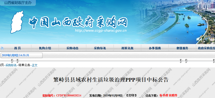 原標(biāo)題:山西省繁峙縣農(nóng)村垃圾治理PPP項(xiàng)目中標(biāo)公示出爐
