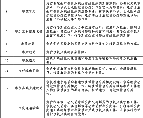 開(kāi)封市生活垃圾分類工作任務(wù)分解表