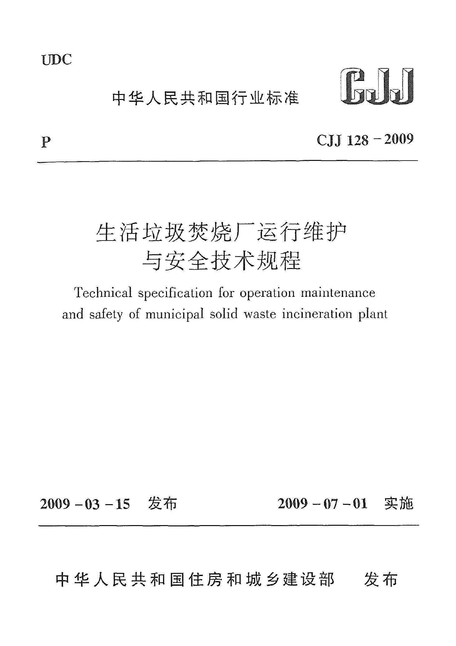 生活垃圾焚燒廠運行維護與安全技術(shù)規(guī)程(CJJ 128-2009)