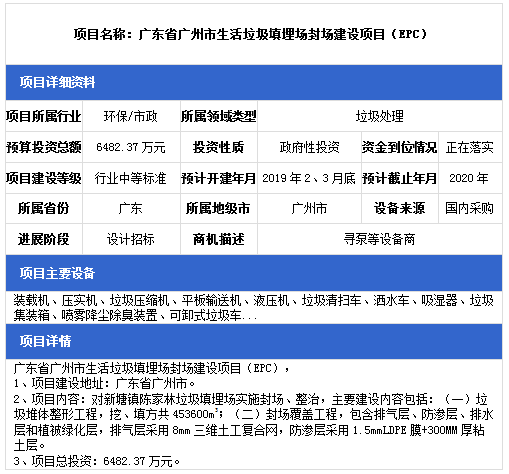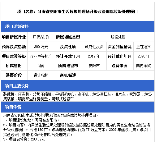 中項(xiàng)網(wǎng)獨(dú)家授權(quán)北極星固廢網(wǎng)發(fā)布最新垃圾處理項(xiàng)目(2019年1月14日更新),其中包括垃圾填埋場(chǎng)項(xiàng)目、餐廚垃圾處理項(xiàng)目、生活垃圾中轉(zhuǎn)站建設(shè)項(xiàng)目等。具體內(nèi)容如下: