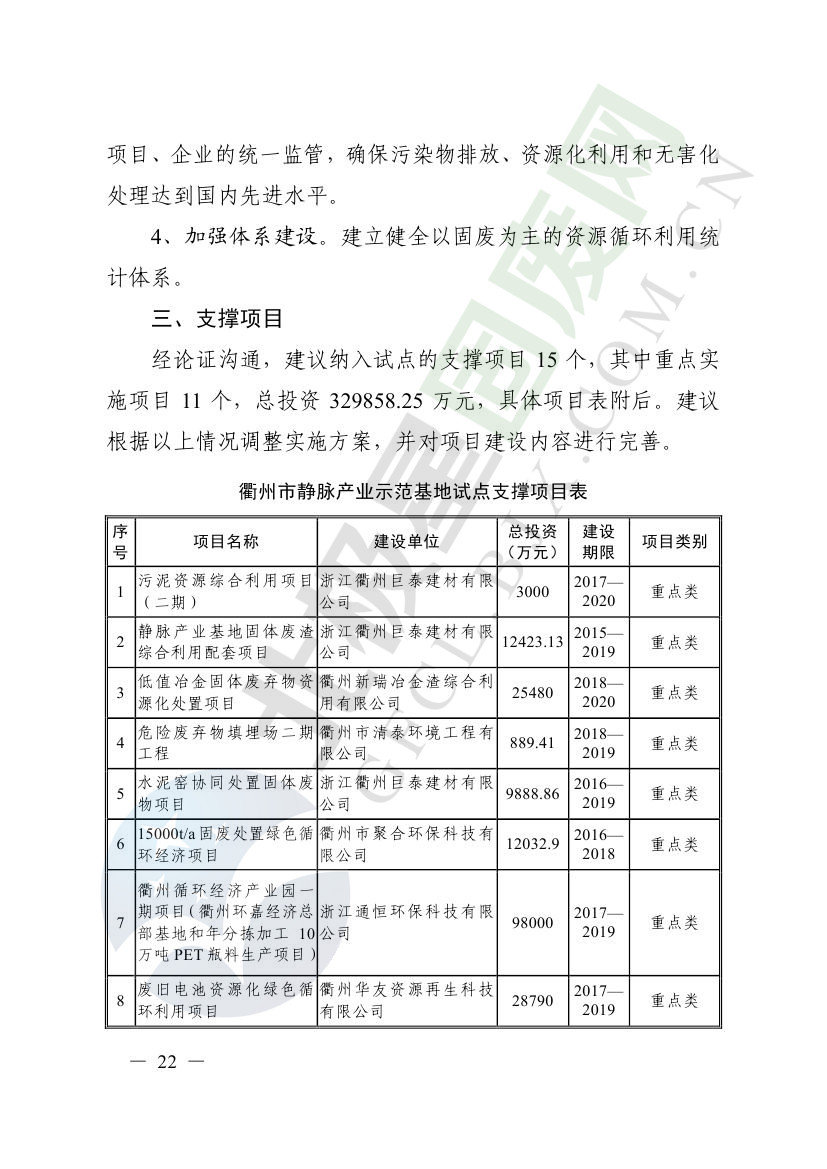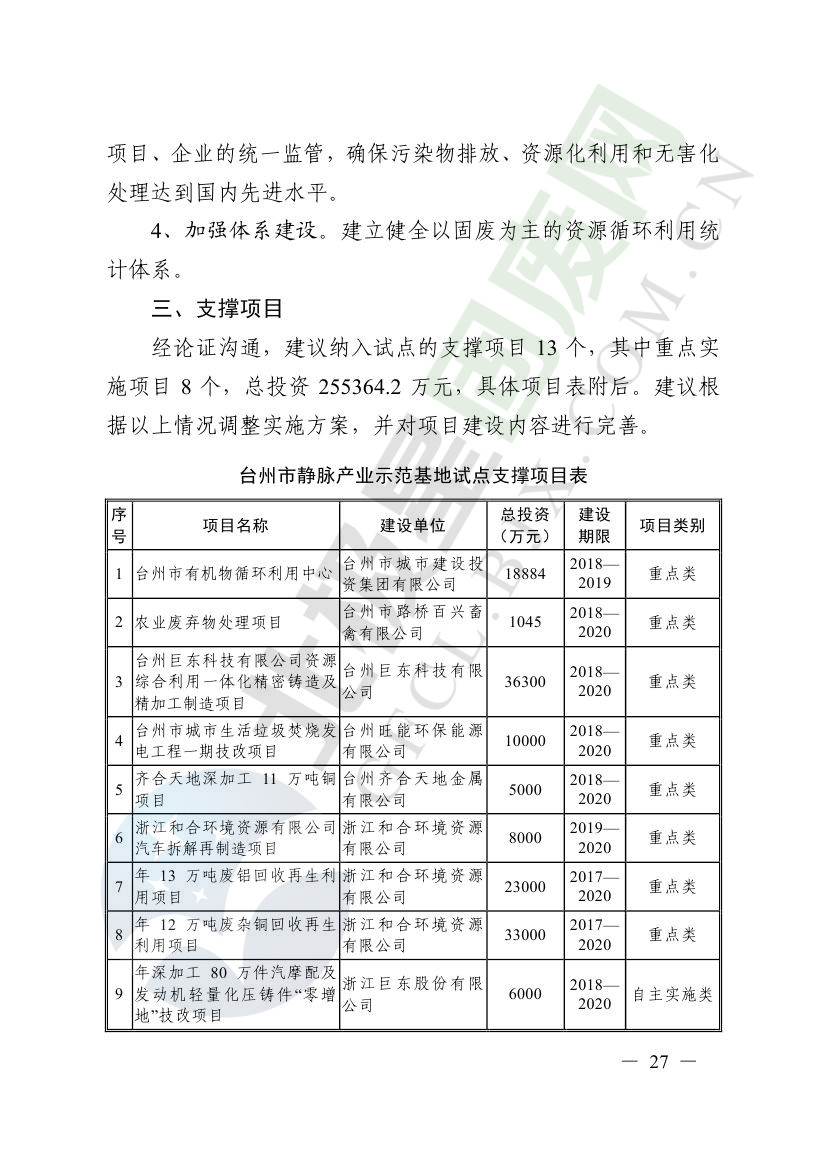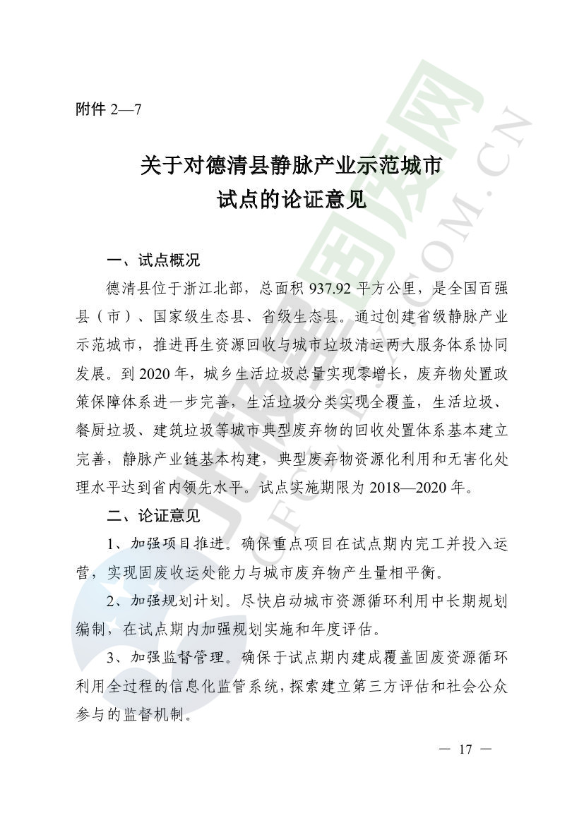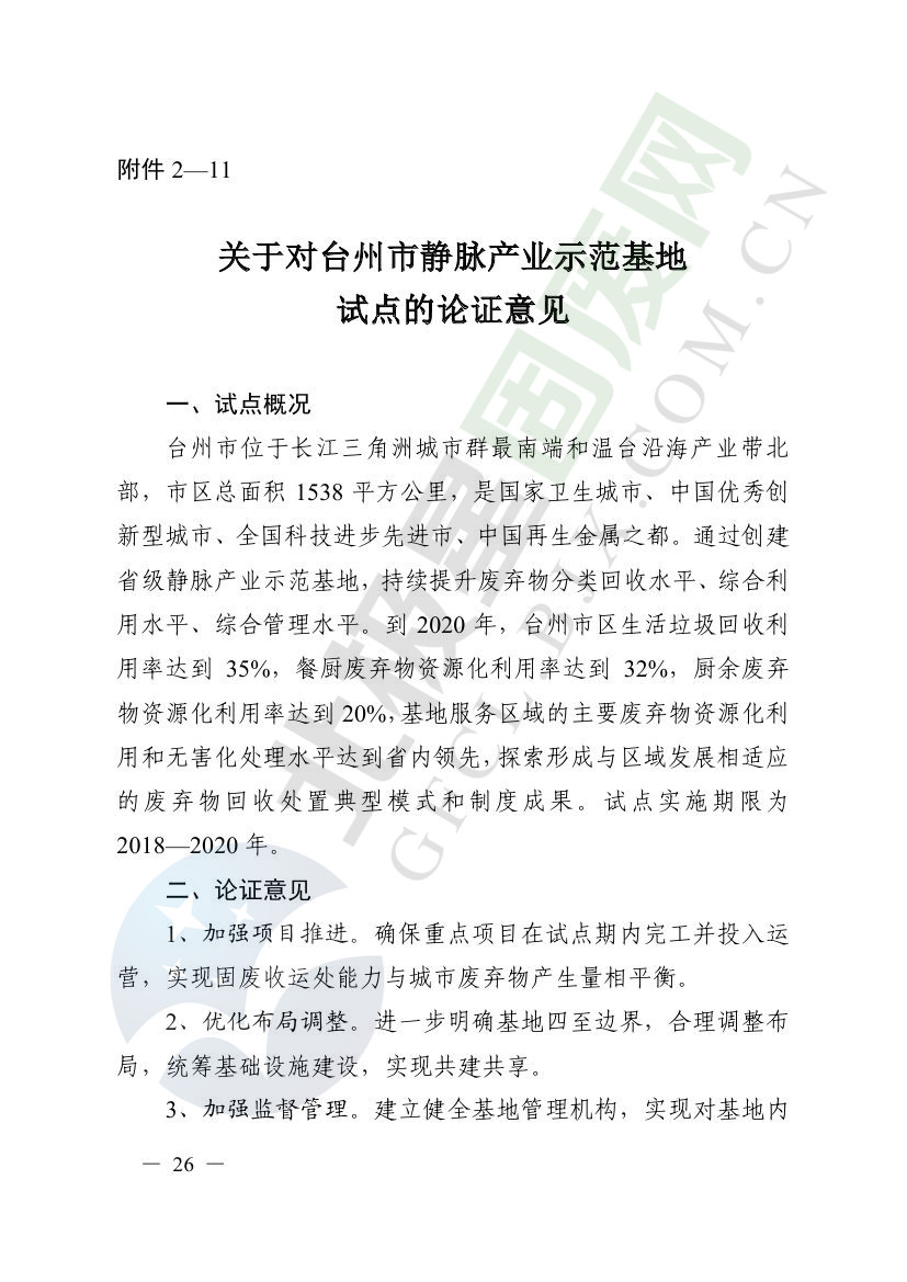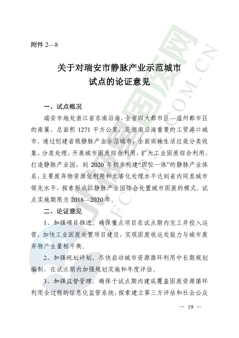 一、原則同意麗水市等8個城市和衢州市等3個基地的試點(diǎn)實(shí)施方案,并確定麗水市等4個城市為省級靜脈產(chǎn)業(yè)示范城市試點(diǎn)(創(chuàng)建類),衢州市等2個基地為省級靜脈產(chǎn)業(yè)示范基地試點(diǎn)(創(chuàng)建類),金華市等4個城市為省級靜脈產(chǎn)業(yè)示范城市試點(diǎn)(培育類),臺州市為省級靜脈產(chǎn)業(yè)示范基地試點(diǎn)(培育類),具體名單詳見附件1。請根據(jù)意見(附件2)認(rèn)真修改完善試點(diǎn)方案,于12月22日前將修改完善后的實(shí)施方案(附光盤)(一式2份)報(bào)送省發(fā)展改革委、省財(cái)政廳、省生態(tài)環(huán)境廳、省建設(shè)廳、省農(nóng)業(yè)農(nóng)村廳、省商務(wù)廳備案。