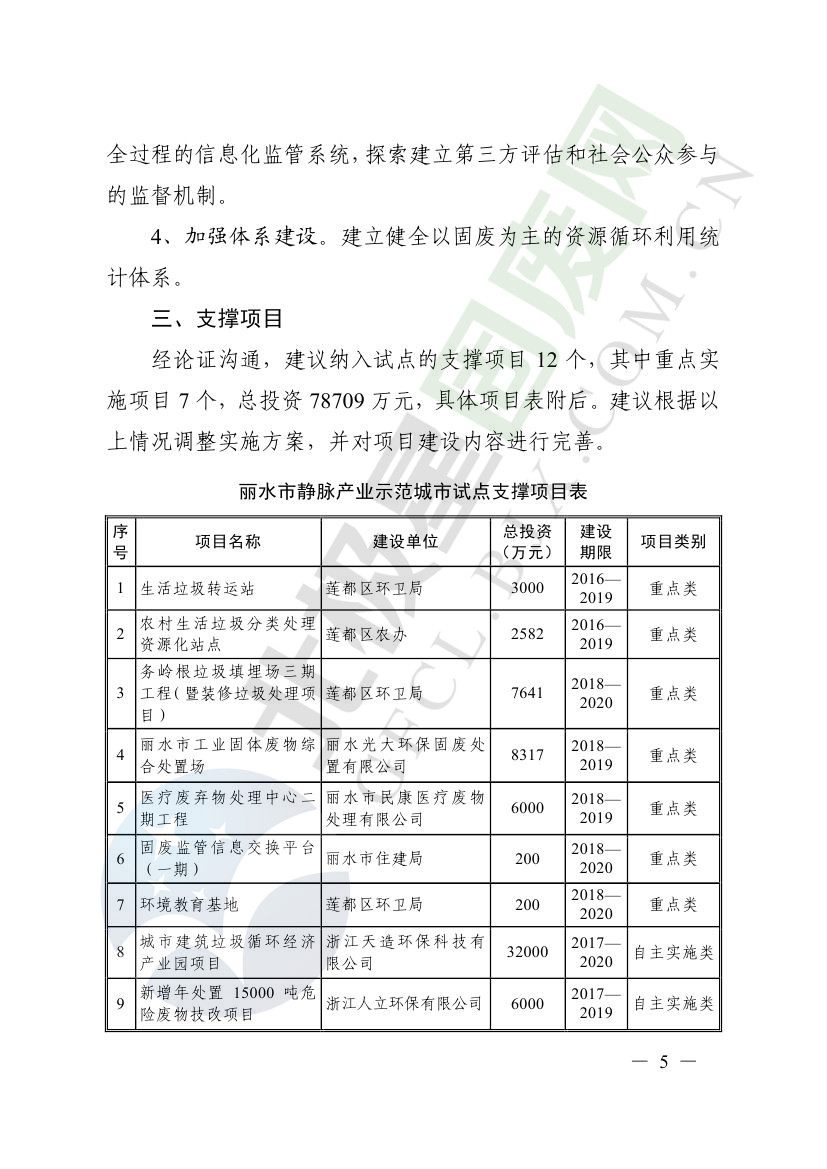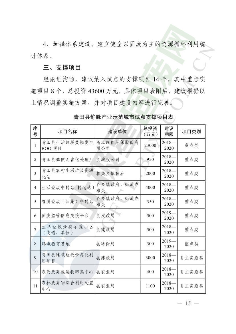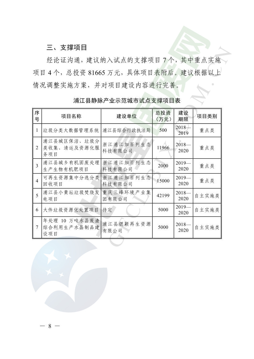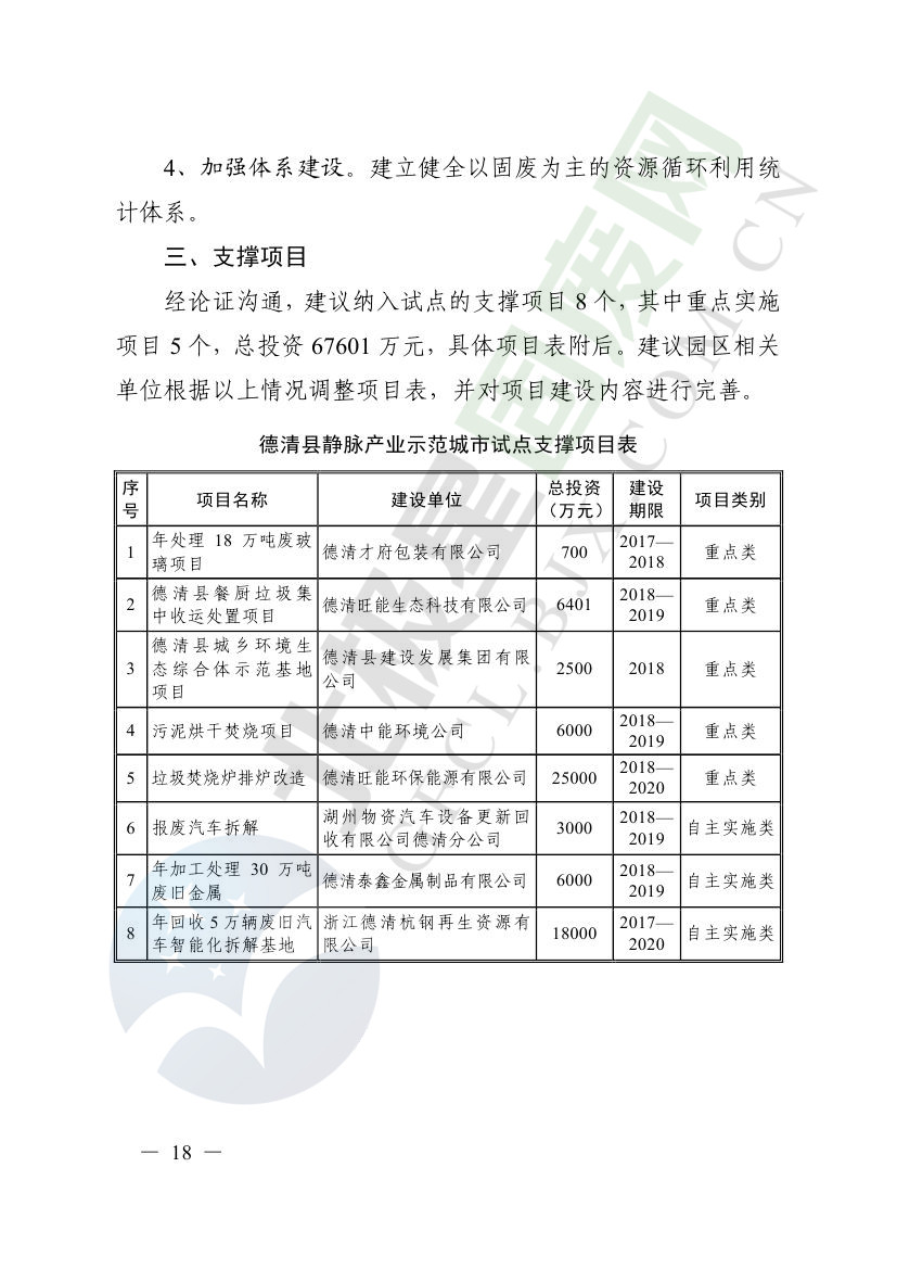 一、原則同意麗水市等8個城市和衢州市等3個基地的試點(diǎn)實(shí)施方案,并確定麗水市等4個城市為省級靜脈產(chǎn)業(yè)示范城市試點(diǎn)(創(chuàng)建類),衢州市等2個基地為省級靜脈產(chǎn)業(yè)示范基地試點(diǎn)(創(chuàng)建類),金華市等4個城市為省級靜脈產(chǎn)業(yè)示范城市試點(diǎn)(培育類),臺州市為省級靜脈產(chǎn)業(yè)示范基地試點(diǎn)(培育類),具體名單詳見附件1。請根據(jù)意見(附件2)認(rèn)真修改完善試點(diǎn)方案,于12月22日前將修改完善后的實(shí)施方案(附光盤)(一式2份)報(bào)送省發(fā)展改革委、省財(cái)政廳、省生態(tài)環(huán)境廳、省建設(shè)廳、省農(nóng)業(yè)農(nóng)村廳、省商務(wù)廳備案。