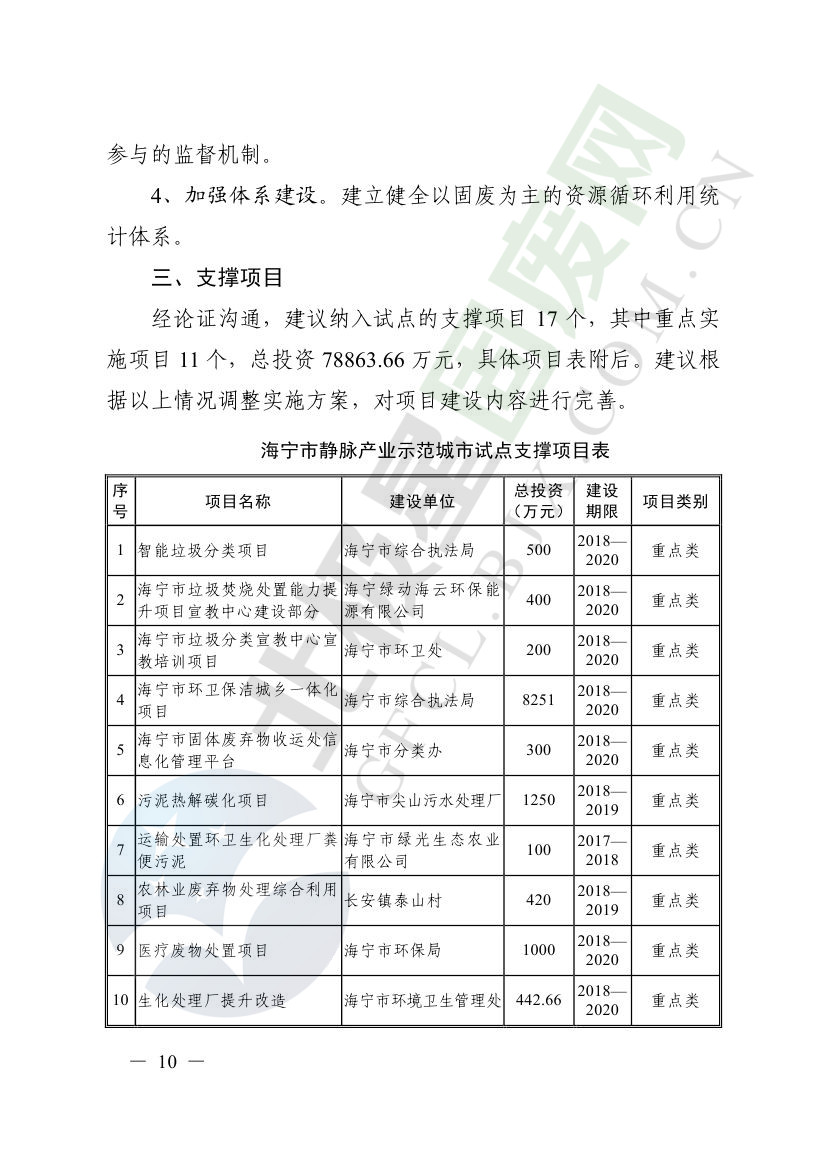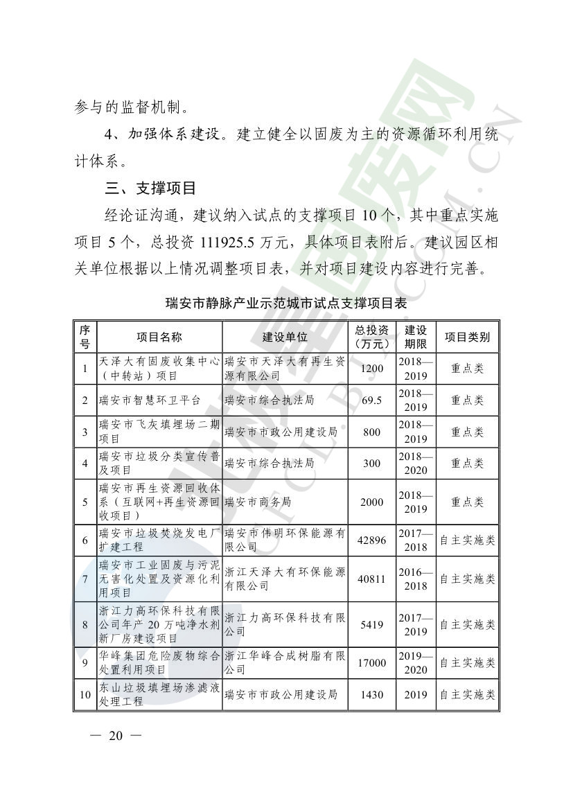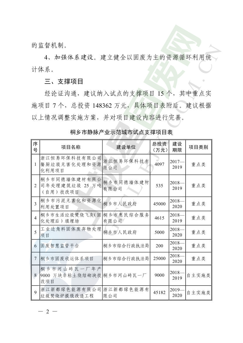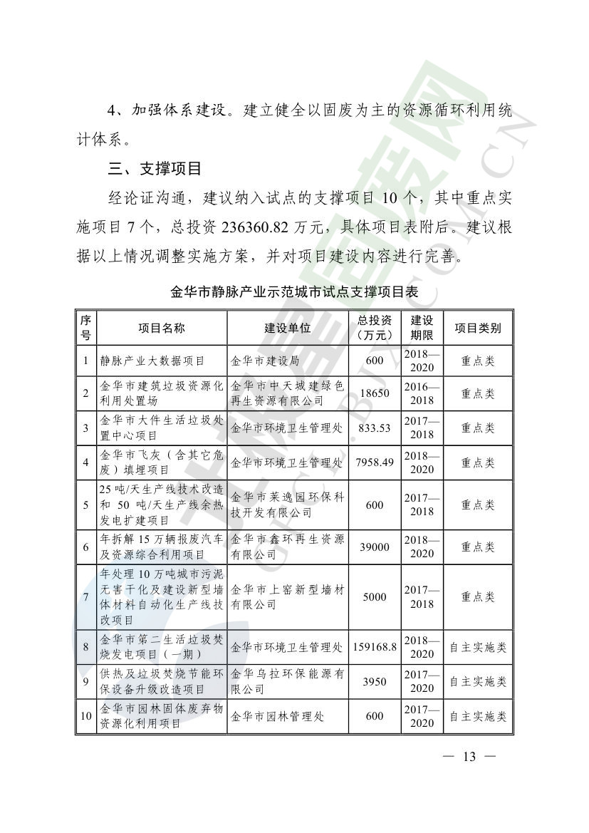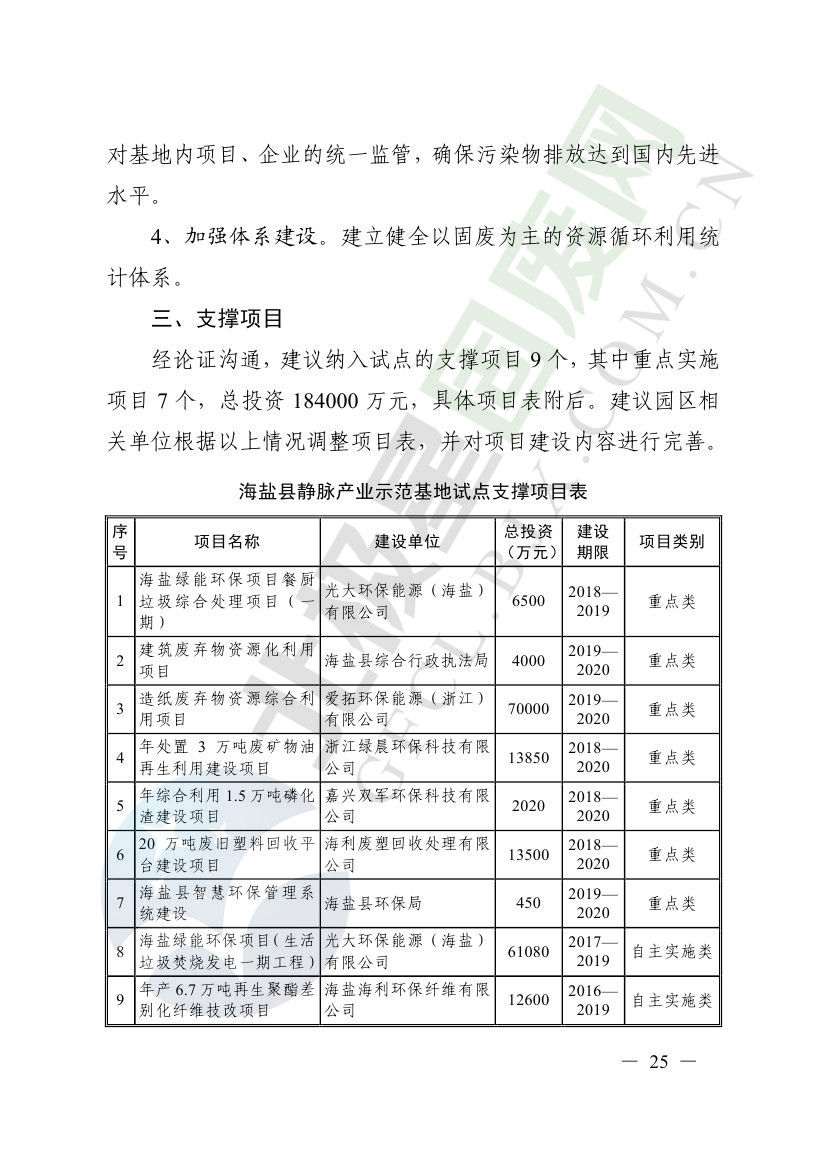 一、原則同意麗水市等8個城市和衢州市等3個基地的試點(diǎn)實(shí)施方案,并確定麗水市等4個城市為省級靜脈產(chǎn)業(yè)示范城市試點(diǎn)(創(chuàng)建類),衢州市等2個基地為省級靜脈產(chǎn)業(yè)示范基地試點(diǎn)(創(chuàng)建類),金華市等4個城市為省級靜脈產(chǎn)業(yè)示范城市試點(diǎn)(培育類),臺州市為省級靜脈產(chǎn)業(yè)示范基地試點(diǎn)(培育類),具體名單詳見附件1。請根據(jù)意見(附件2)認(rèn)真修改完善試點(diǎn)方案,于12月22日前將修改完善后的實(shí)施方案(附光盤)(一式2份)報(bào)送省發(fā)展改革委、省財(cái)政廳、省生態(tài)環(huán)境廳、省建設(shè)廳、省農(nóng)業(yè)農(nóng)村廳、省商務(wù)廳備案。