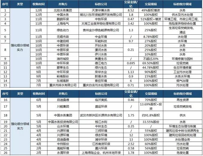2018環(huán)保業(yè)外跨界并購
