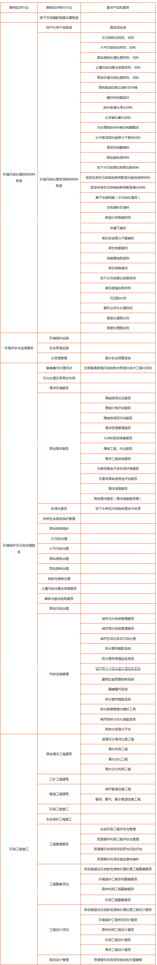 先進環(huán)保產(chǎn)業(yè)重點國民經(jīng)濟行業(yè)如下: