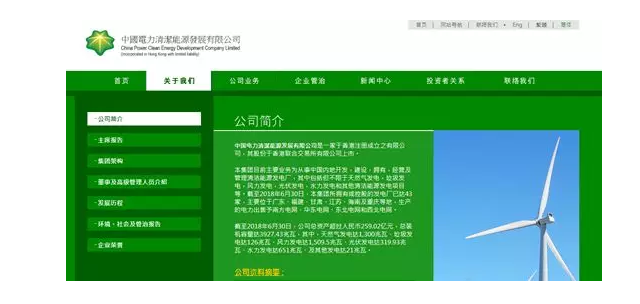 中國電力清潔能源發(fā)展有限公司是一家于香港注冊成立之有限公司,其股份于香港聯(lián)合交易所有限公司上市。上市代碼 00735。董事會主席王炳華。王炳華同時也是中國電力國際發(fā)展有限公司非執(zhí)行董事及董事局主席、中國電力新能源發(fā)展有限公司董事會主席及非執(zhí)行董事。