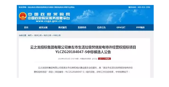 在廣西這樣的西南部地區(qū),垃圾焚燒領(lǐng)域大多剛開始興建,且該項目規(guī)模不小,對于布局西南有著重要意義。該項目于2018年11月發(fā)布預(yù)審公告,吸引了14家企業(yè)入圍預(yù)審,包括眾多垃圾處理領(lǐng)域的一線名企。到2019年1月14日,項目公布了中標(biāo)候選人——中電國際新能源控股有限公司(以下簡稱“中電新能源”)。