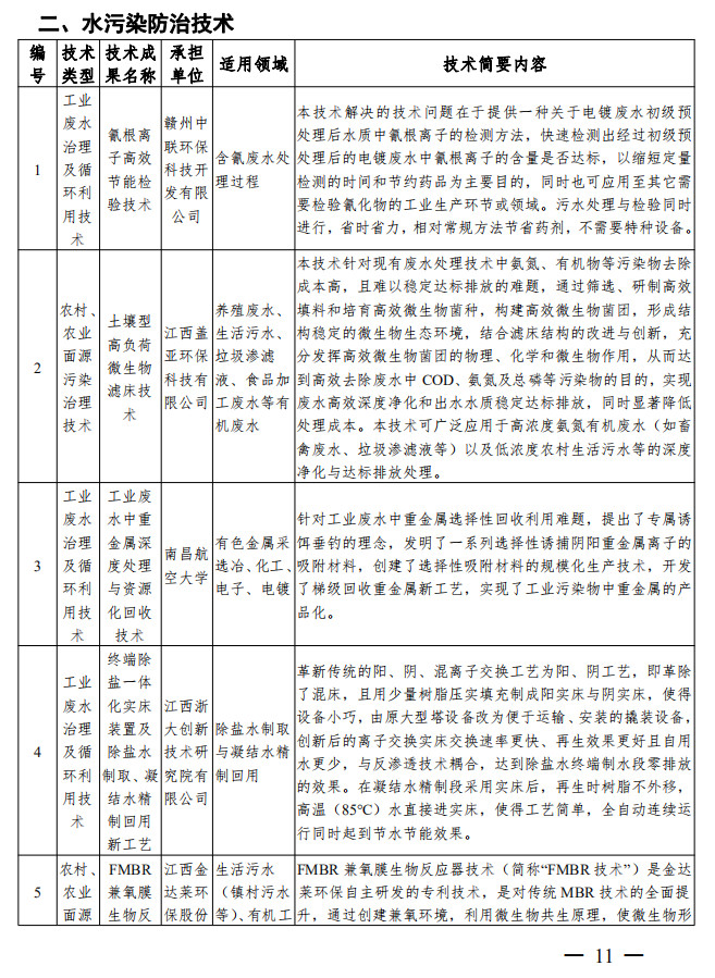 附件:江西?。ù髿狻⑺?、土壤)污染防治先進適用技術(shù)指導(dǎo)目錄(2018年修訂版)