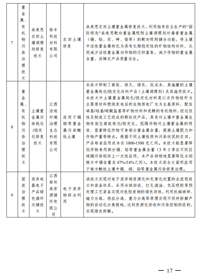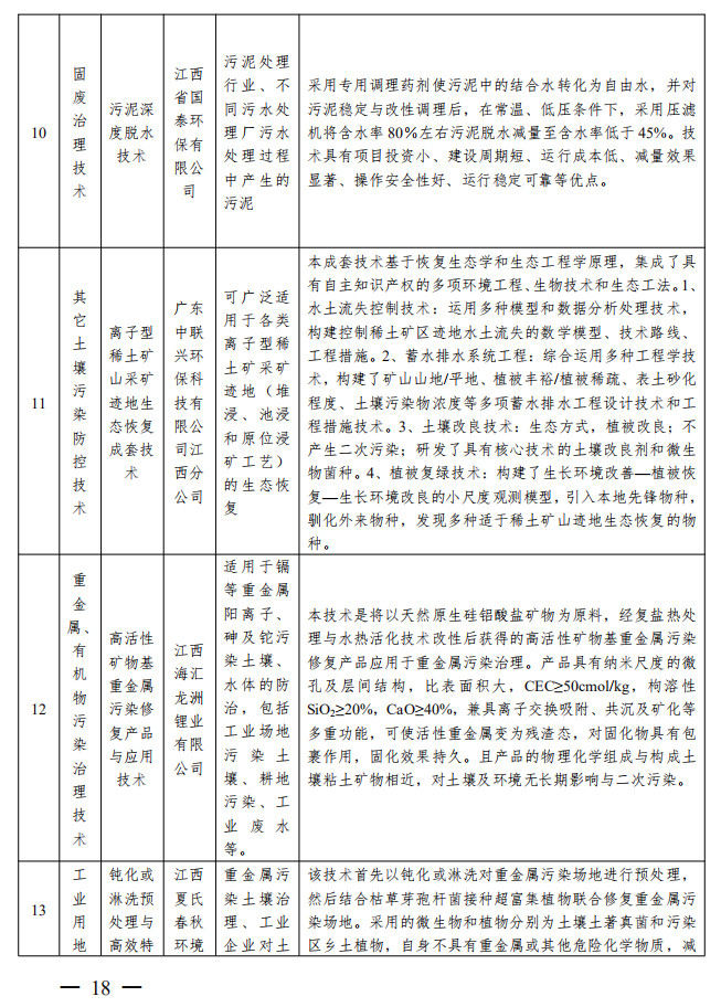 關(guān)于發(fā)布《江西?。ù髿狻⑺⑼寥溃┪廴?防治先進適用技術(shù)指導(dǎo)目錄(2018年 修訂版)》的通知