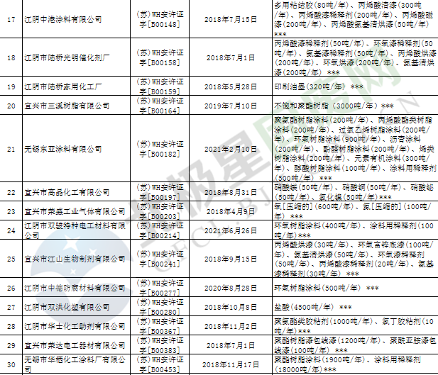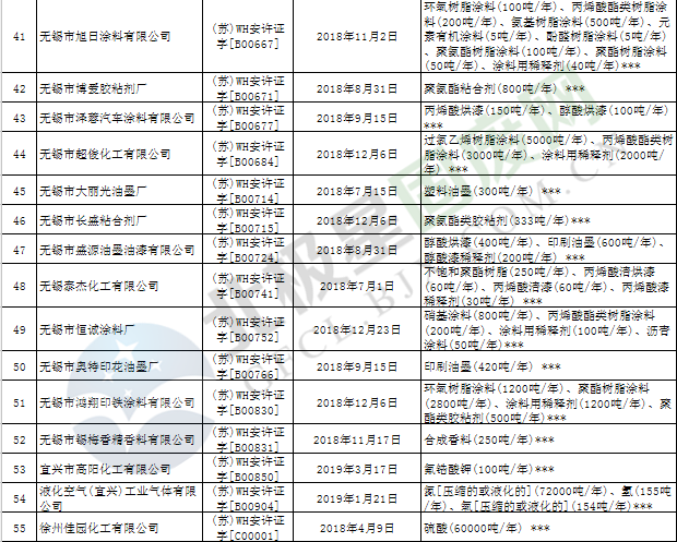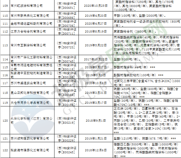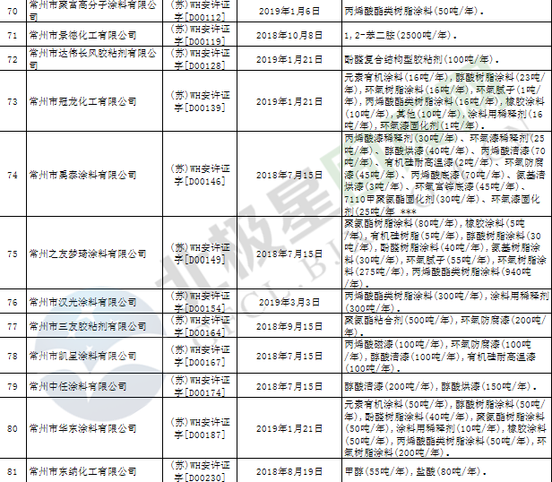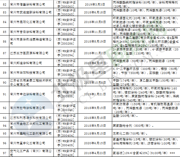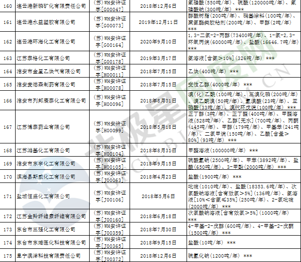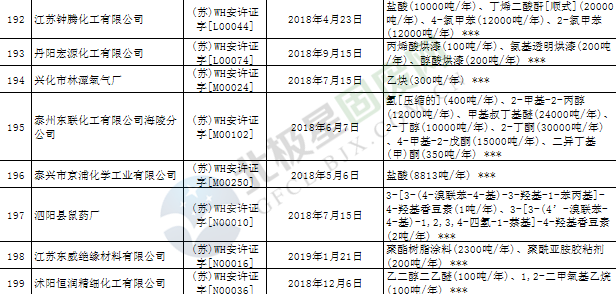 近日,江蘇省應(yīng)急管理廳發(fā)布2019年第3號(hào)公告,公布199家危險(xiǎn)化學(xué)品生產(chǎn)企業(yè)安全生產(chǎn)許可證被注銷,詳情如下: