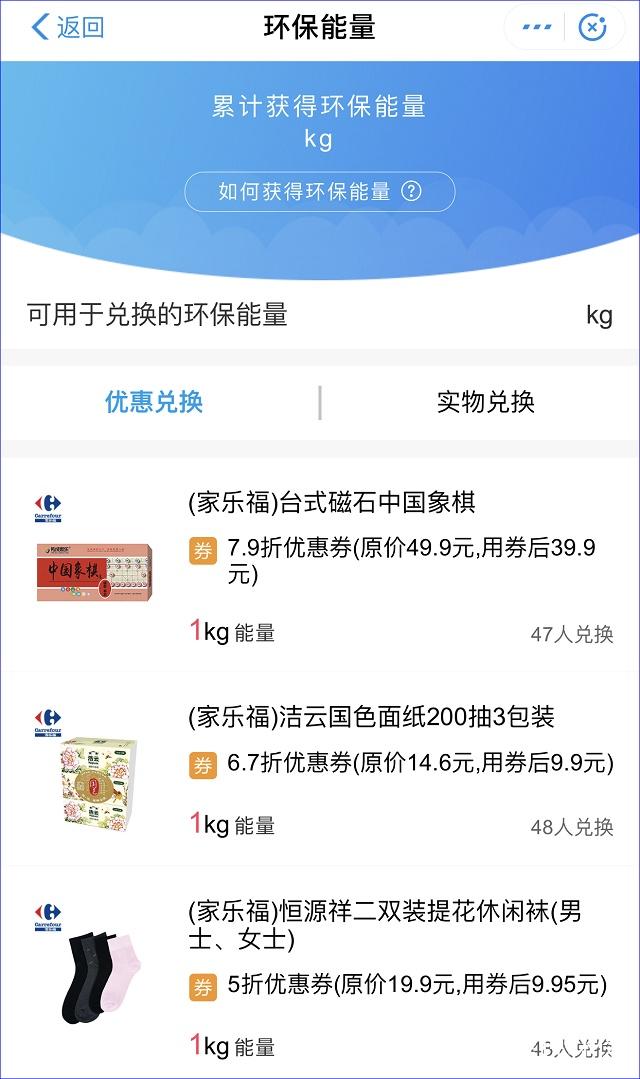 對于回收價值比較低的物品,可以按照重量兌換“能量”,然后利用能量在“環(huán)保商城”兌換優(yōu)惠券或者實物。