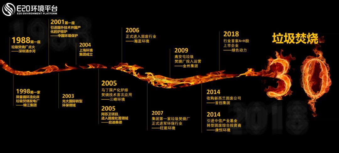 垃圾焚燒的發(fā)展已經(jīng)30年,垃圾焚燒是我國(guó)固廢處理領(lǐng)域目前最成功的細(xì)分領(lǐng)域,下面這張圖回顧了最重要的歷史節(jié)點(diǎn):