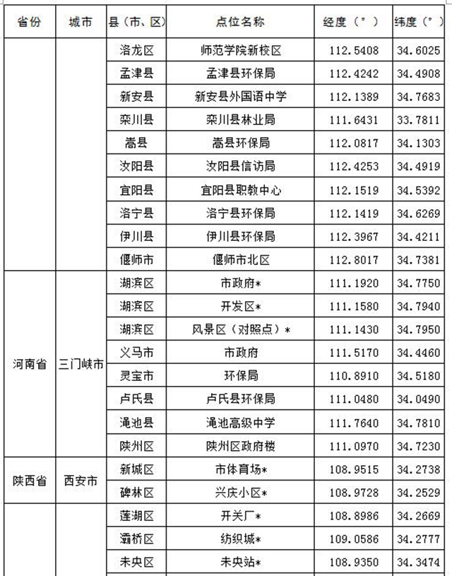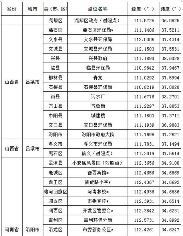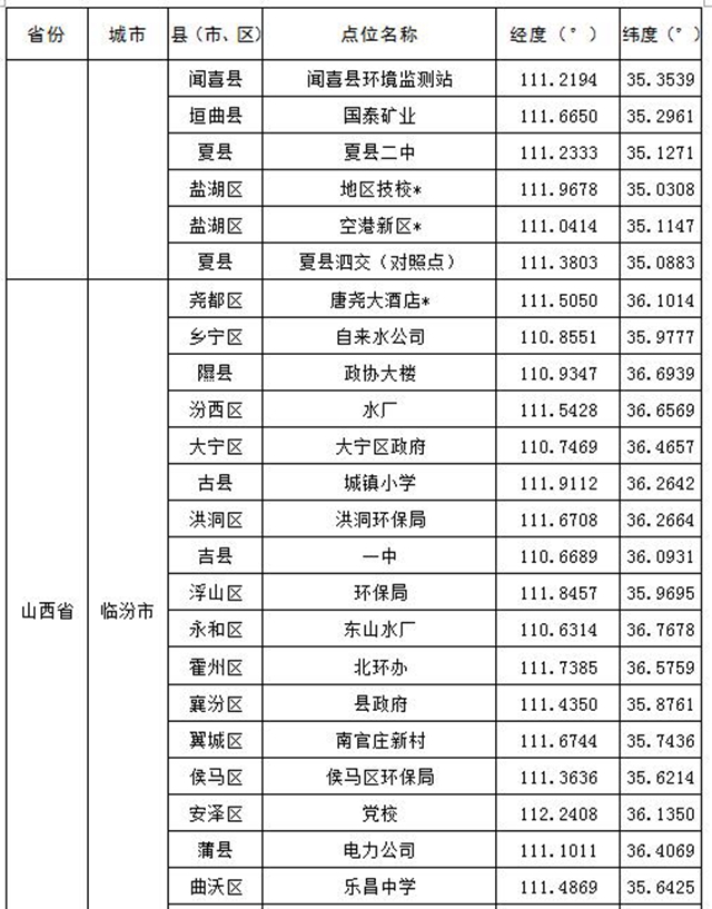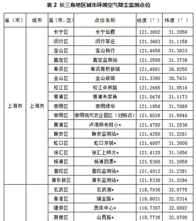 汾渭平原11個(gè)地級(jí)市共設(shè)置147個(gè)監(jiān)測(cè)點(diǎn)位,參見(jiàn)表1,其中國(guó)控站點(diǎn)共38個(gè);長(zhǎng)三角地區(qū)41個(gè)地級(jí)市共設(shè)置404個(gè)點(diǎn)位,其中國(guó)控站點(diǎn)共122個(gè),參見(jiàn)表2。表格中點(diǎn)位名稱(chēng)后打“*”表示國(guó)控站點(diǎn)。