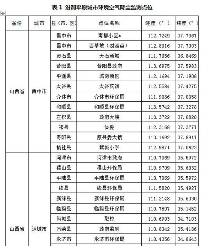 汾渭平原、長(zhǎng)三角地區(qū)52個(gè)城市自行開(kāi)展各行政區(qū)域內(nèi)縣(市、區(qū))的降塵監(jiān)測(cè)工作。