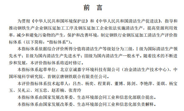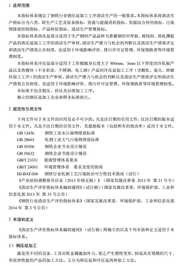 近日,國(guó)家發(fā)改委發(fā)布了鋼鐵行業(yè)(鋼延壓加工)清潔生產(chǎn)評(píng)價(jià)指標(biāo)體系,該政策對(duì)于鋼延壓加工工序中的大氣污染物排放量、水污染物排放量、固體廢物處置方面都進(jìn)行了說(shuō)明,全文如下: