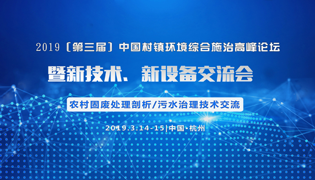 2019(第三屆)中國村鎮(zhèn)環(huán)境綜合施治高峰論壇暨新技術、新設備交流會將于2019 年3月14日-15日在杭州召開,論壇將圍繞農村固廢處理等問題廣邀專家進行探討。