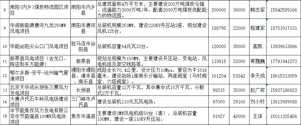 在21日舉辦的河南省2019年重大項目銀企對接會上,河南省發(fā)展改革委等部門向金融機構(gòu)公開推介了906個重大項目,總投資14070億元,融資需求3546億元。涉及:焦作丹河異地2×100萬千瓦煤電機組擴建項目、鄭州新力2×66萬千瓦煤電機組項目、大唐鞏義2×60萬千瓦煤電機組擴建項目、南陽內(nèi)鄉(xiāng)2×100萬千瓦煤電機組項目、洛陽萬基2×60萬千瓦煤電機組項目、河南天池抽水蓄能電站項目、中國光大國際有限公司太康縣生活垃圾焚燒發(fā)電廠建設(shè)項目等多個能源、垃圾焚燒發(fā)電項目。