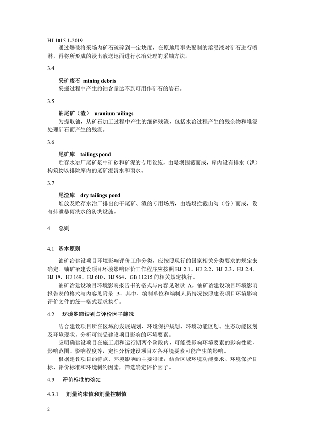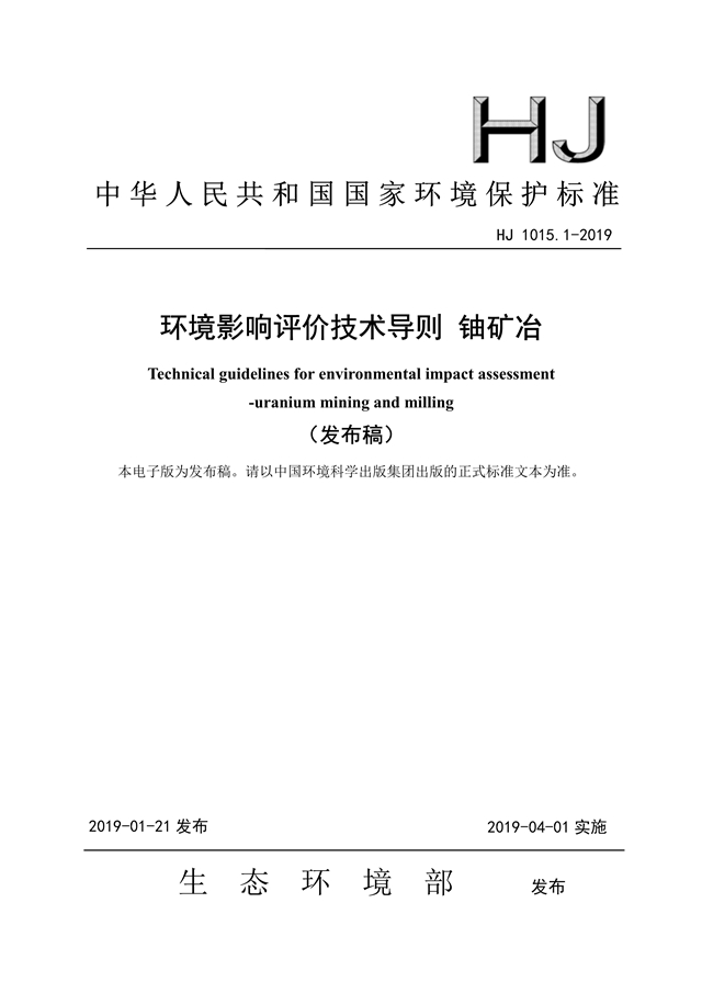 環(huán)境影響評(píng)價(jià)技術(shù)導(dǎo)則 鈾礦冶(HJ 1015.1-2019)