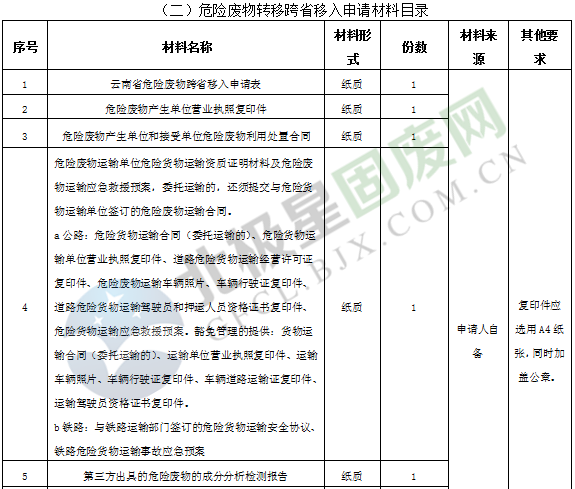 (一)危險(xiǎn)廢物轉(zhuǎn)移跨省移出申請(qǐng)材料目錄