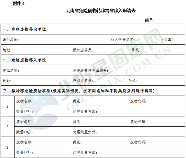 3.云南省危險(xiǎn)廢物轉(zhuǎn)移跨省移入申請(qǐng)表