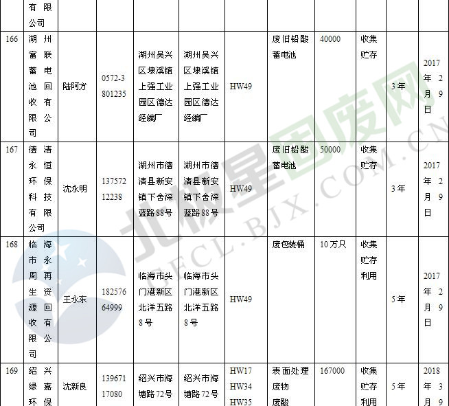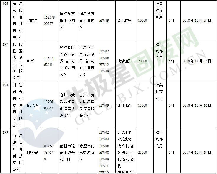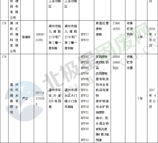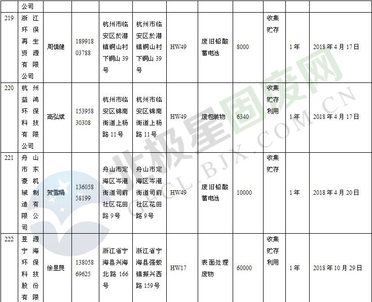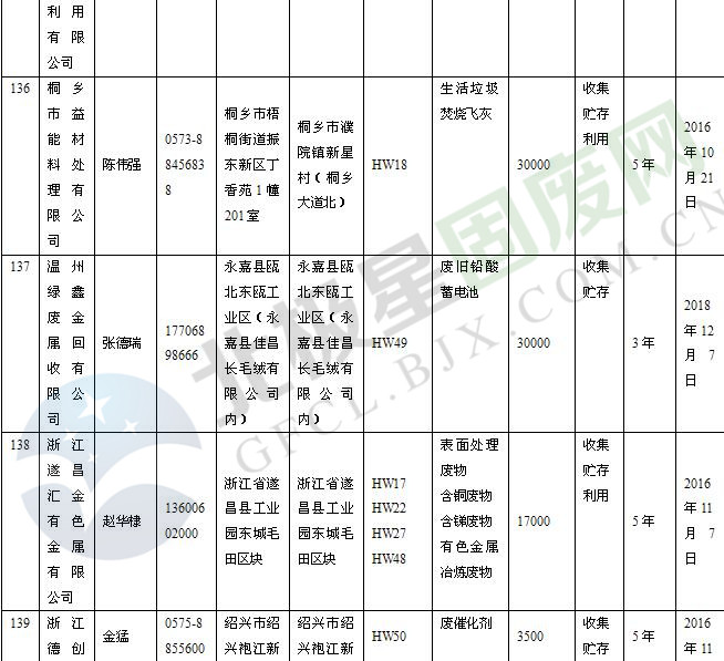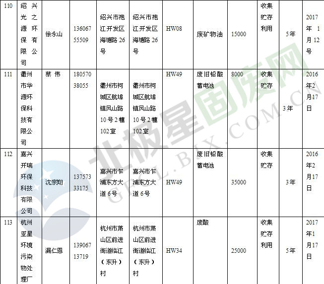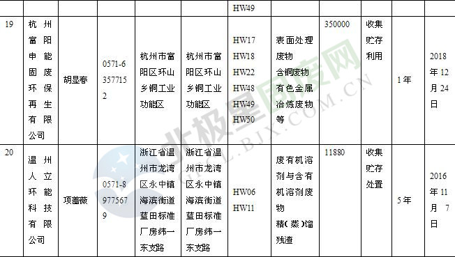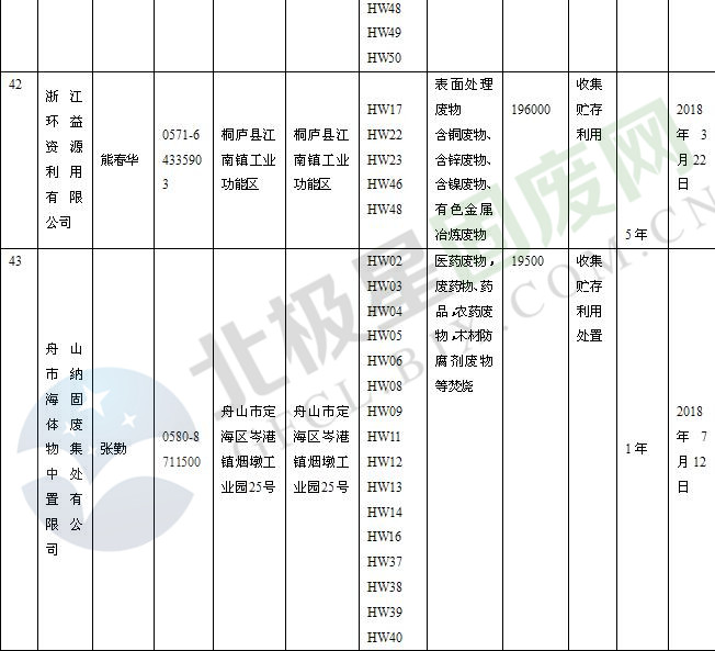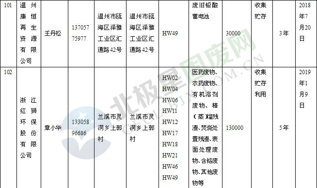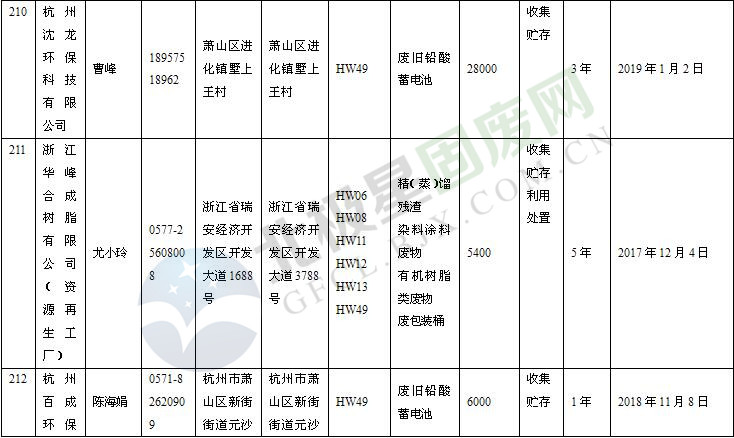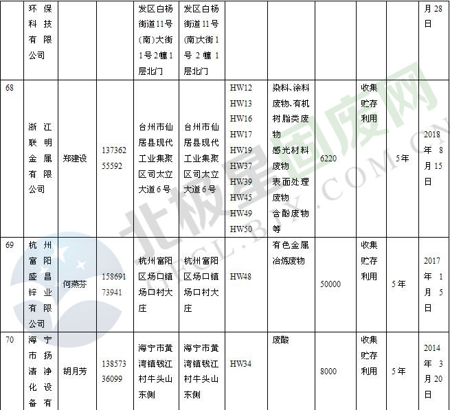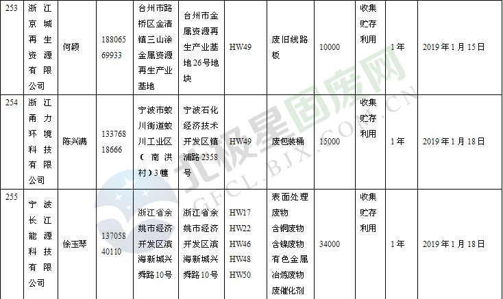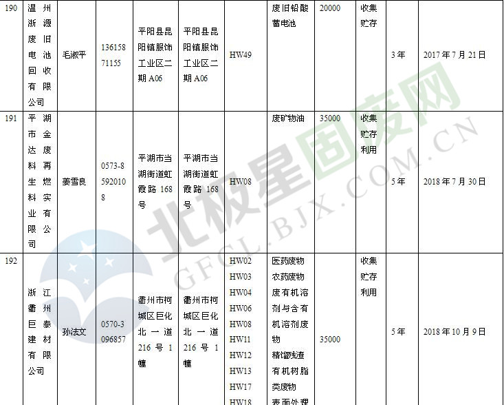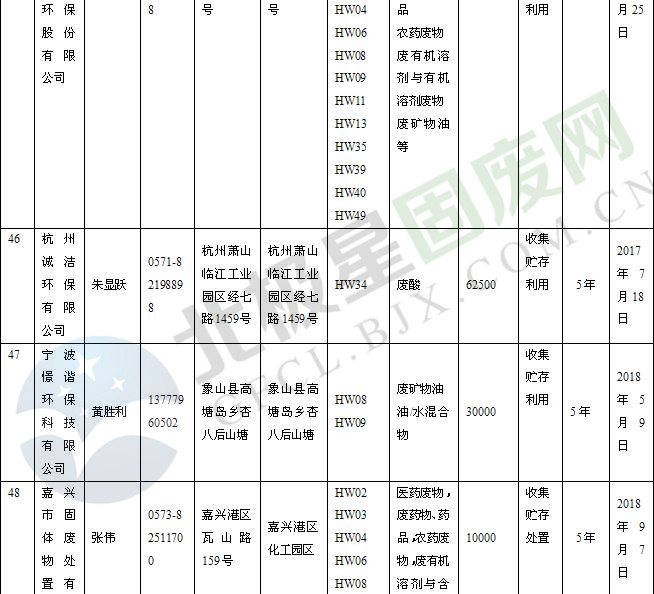 本文整理了浙江省截止至2019.1.22的危險(xiǎn)廢物經(jīng)營(yíng)單位,詳情如下: