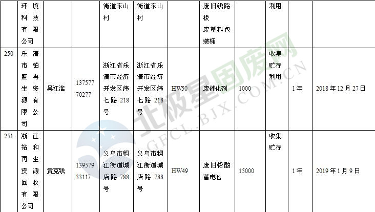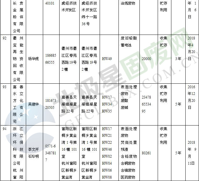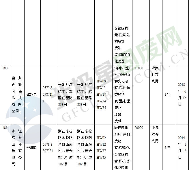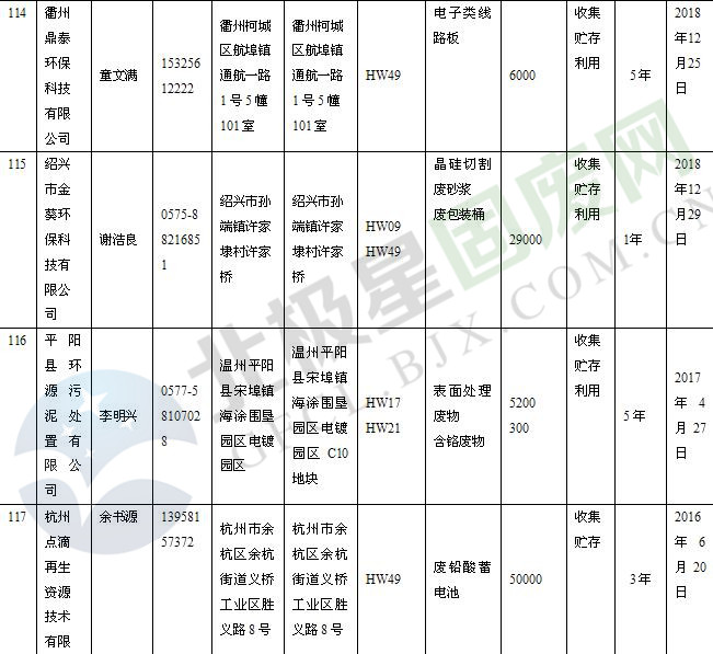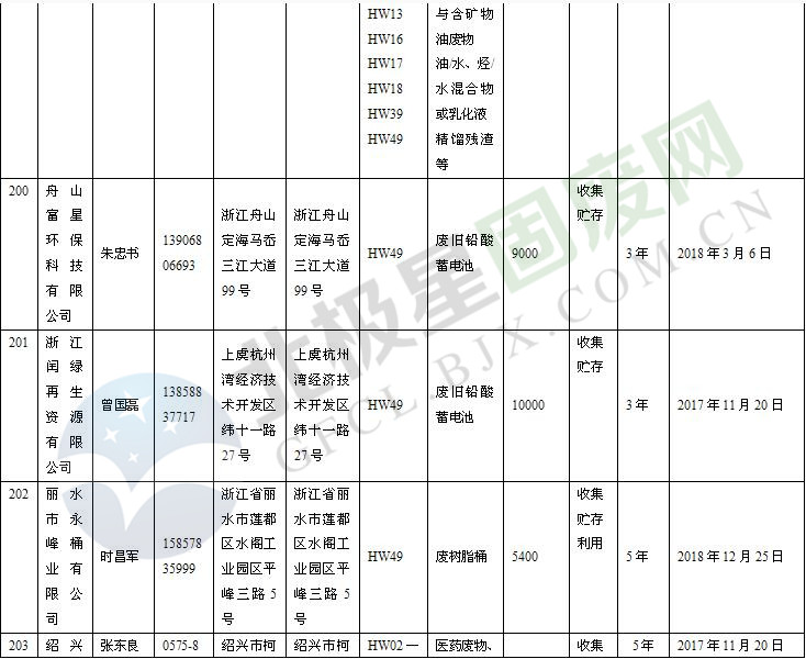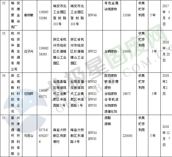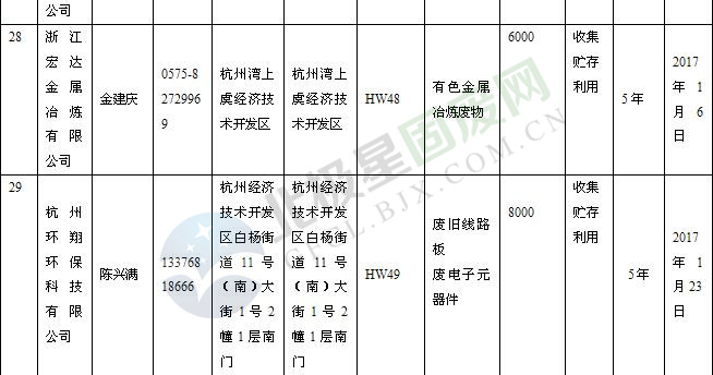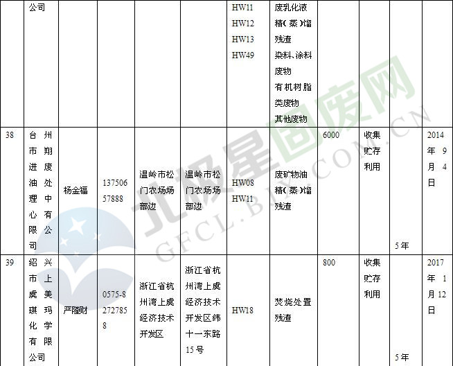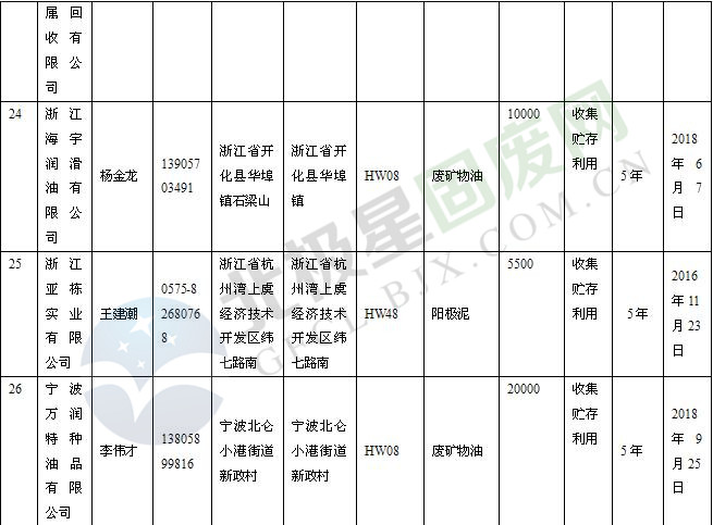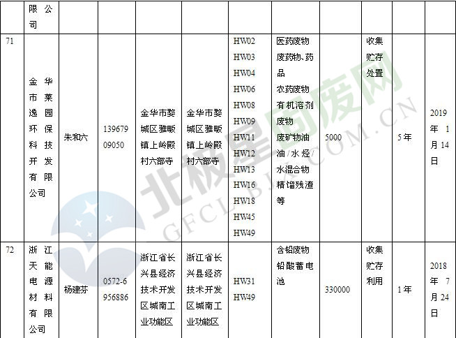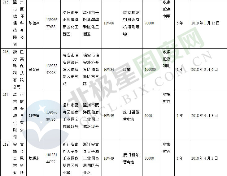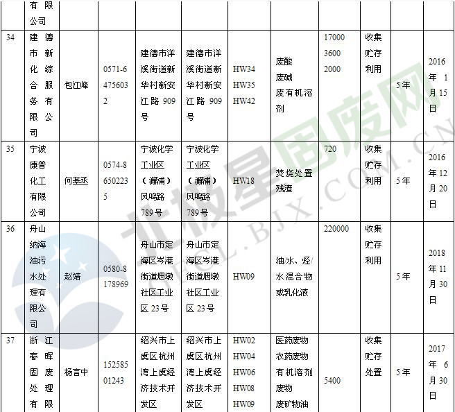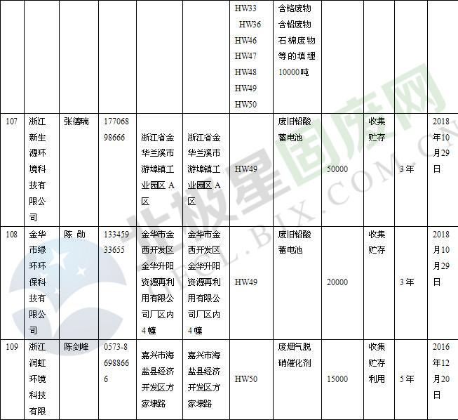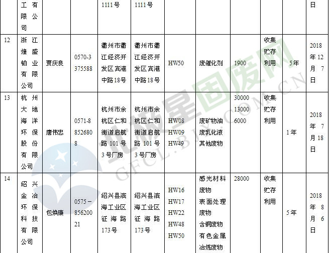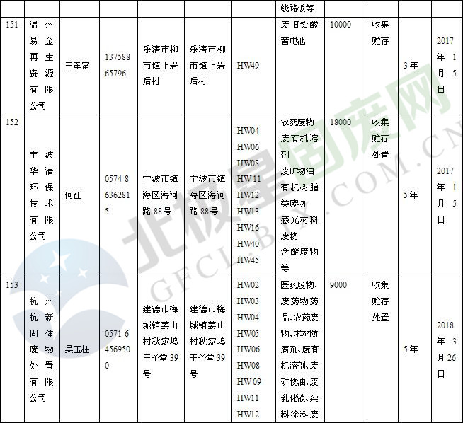 本文整理了浙江省截止至2019.1.22的危險(xiǎn)廢物經(jīng)營(yíng)單位,詳情如下: