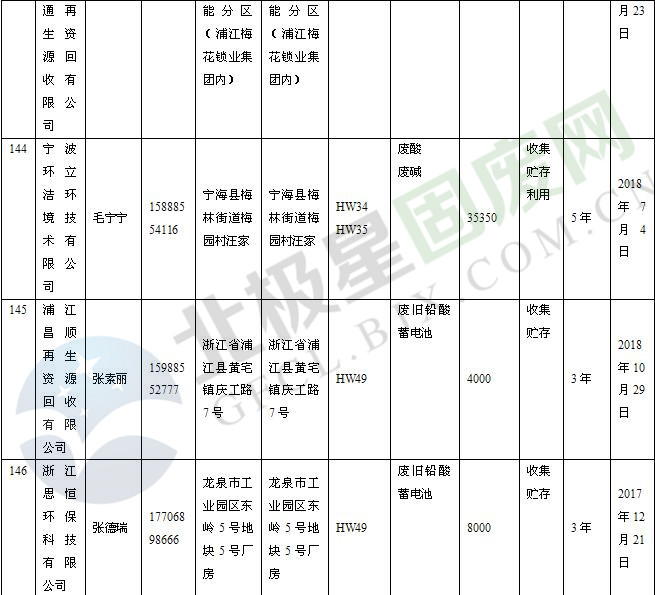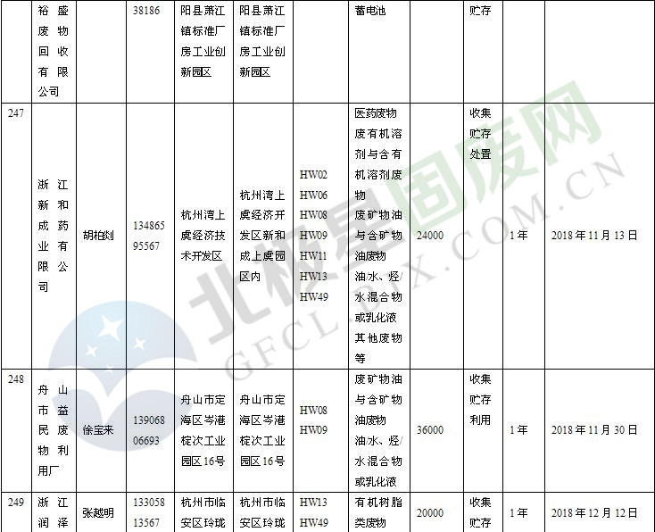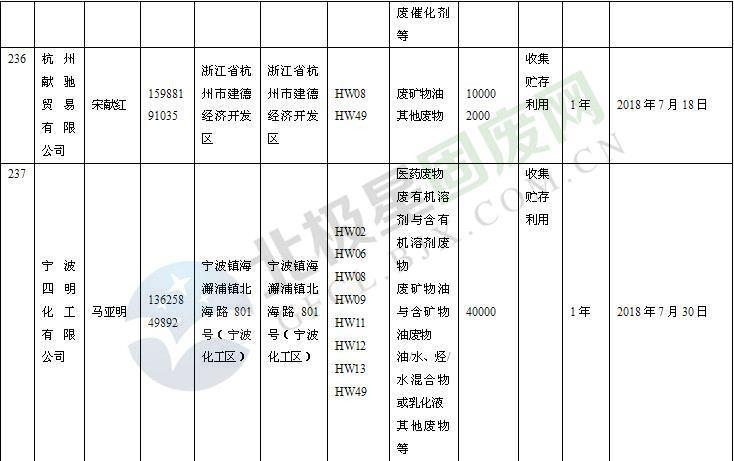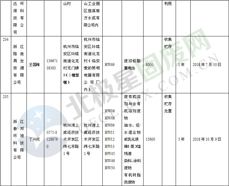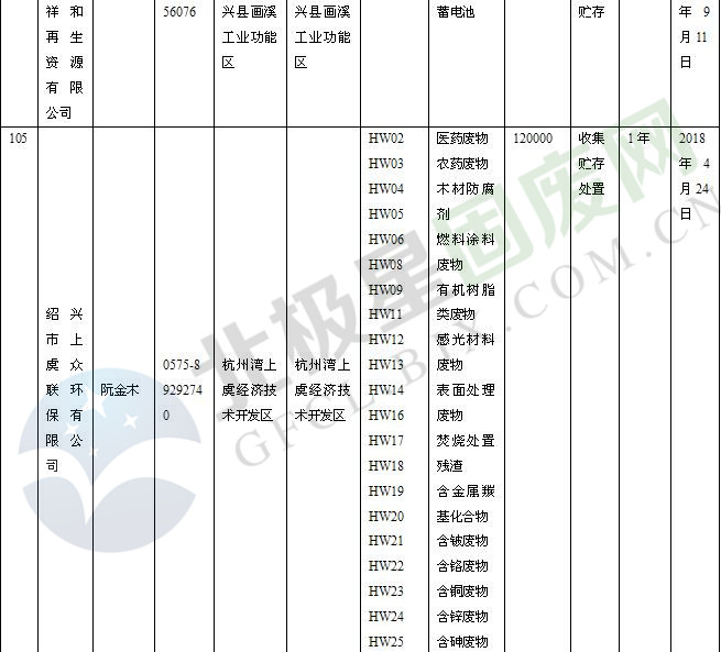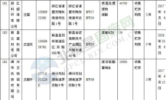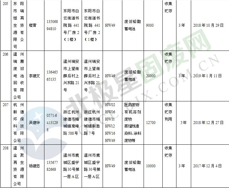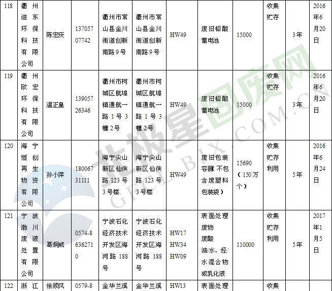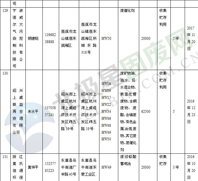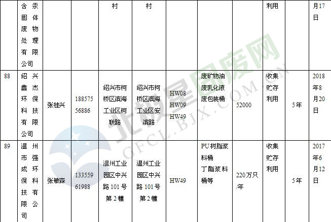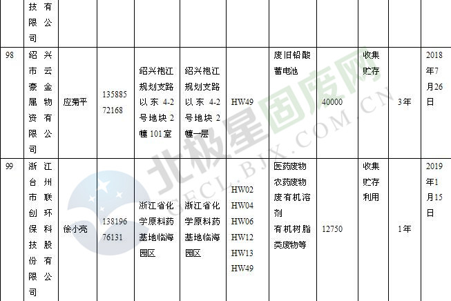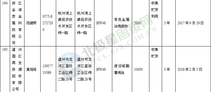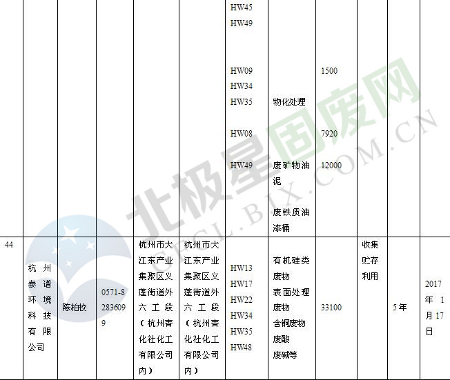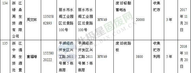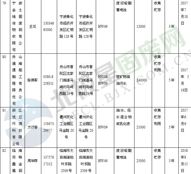 本文整理了浙江省截止至2019.1.22的危險(xiǎn)廢物經(jīng)營(yíng)單位,詳情如下: