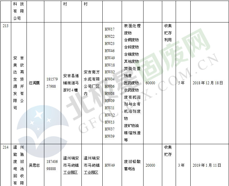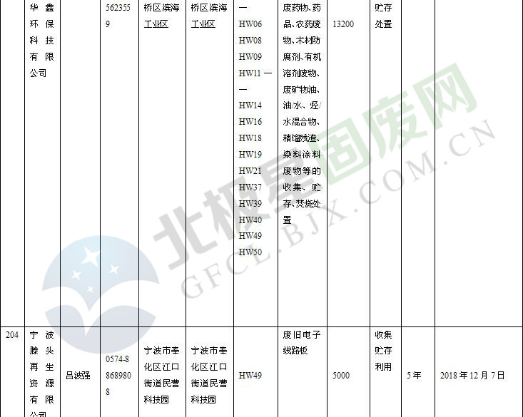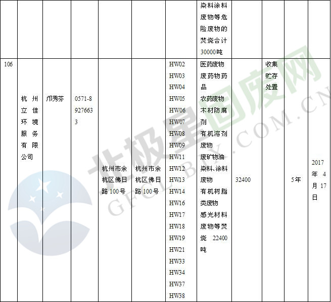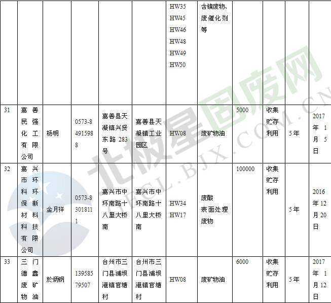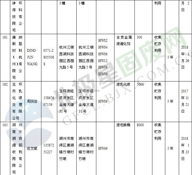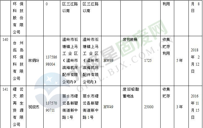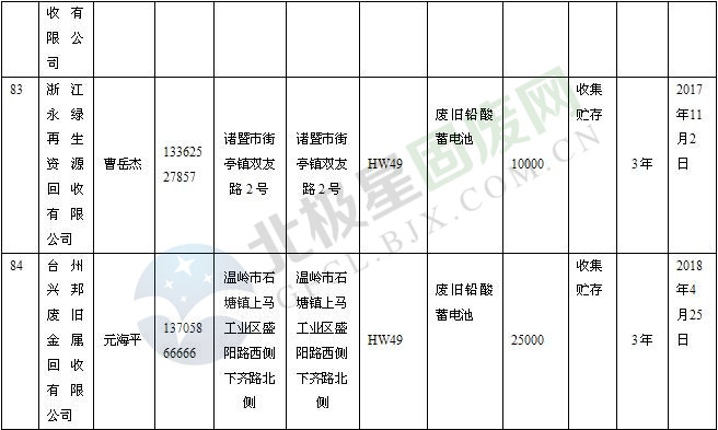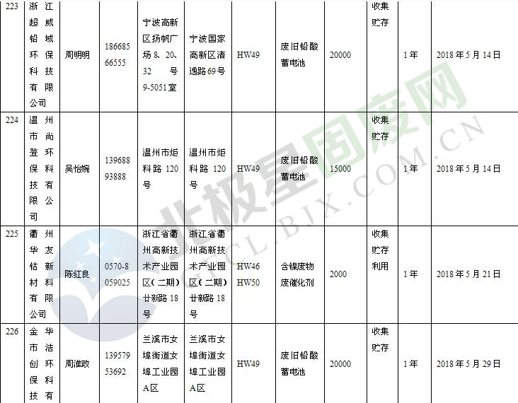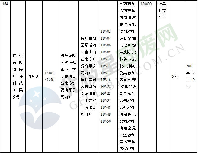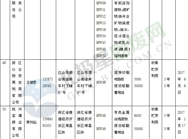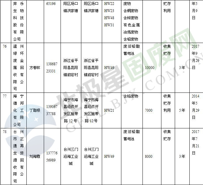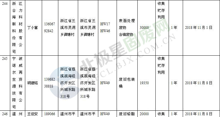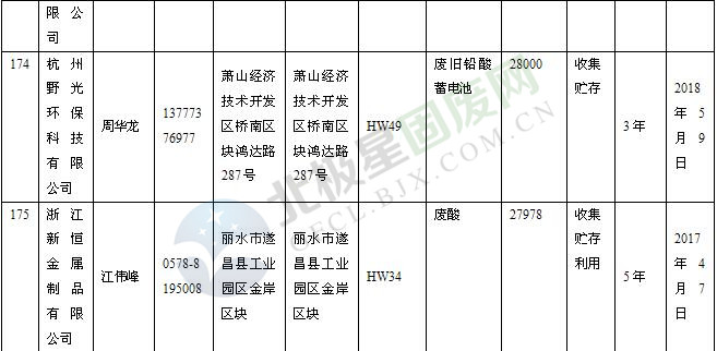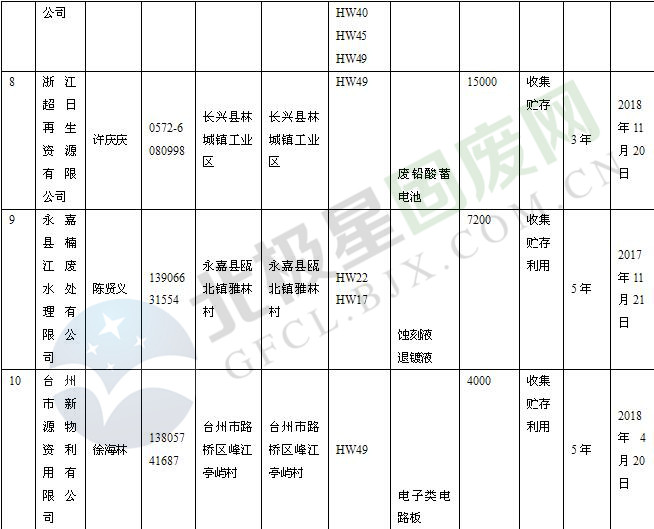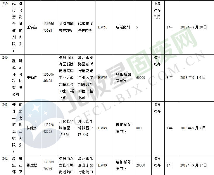 本文整理了浙江省截止至2019.1.22的危險(xiǎn)廢物經(jīng)營(yíng)單位,詳情如下: