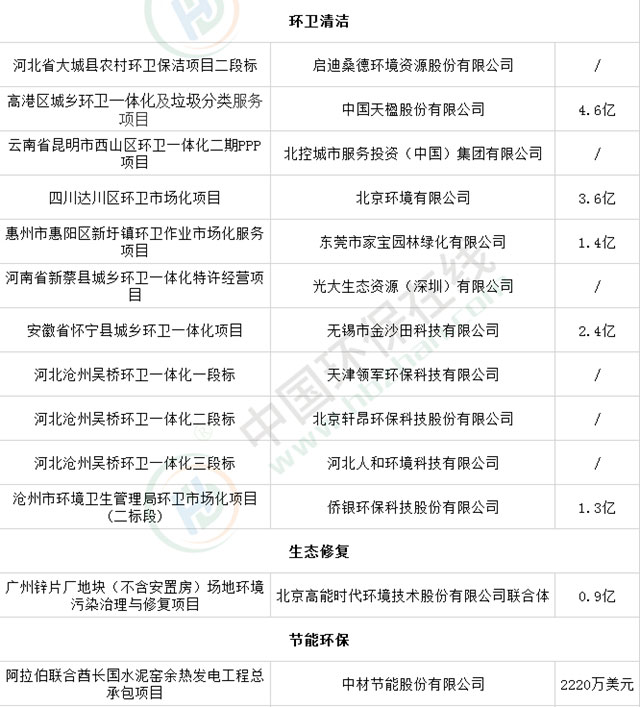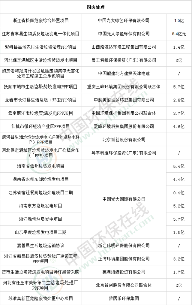 統(tǒng)計截至本文發(fā)稿時,梳理了一些重點的公開中標(biāo)項目,而根據(jù)此次不完全統(tǒng)計也可以清楚地看到,水處理和固廢處理兩大板塊仍然是獨占鰲頭,新年開局之勢就頗為樂觀。前不久,本網(wǎng)也就固廢處理這個行業(yè)開年接收的利好信號進行了解讀,詳情點擊《一只腳踏進2019 就接收到了這些固廢行業(yè)發(fā)展信號》。