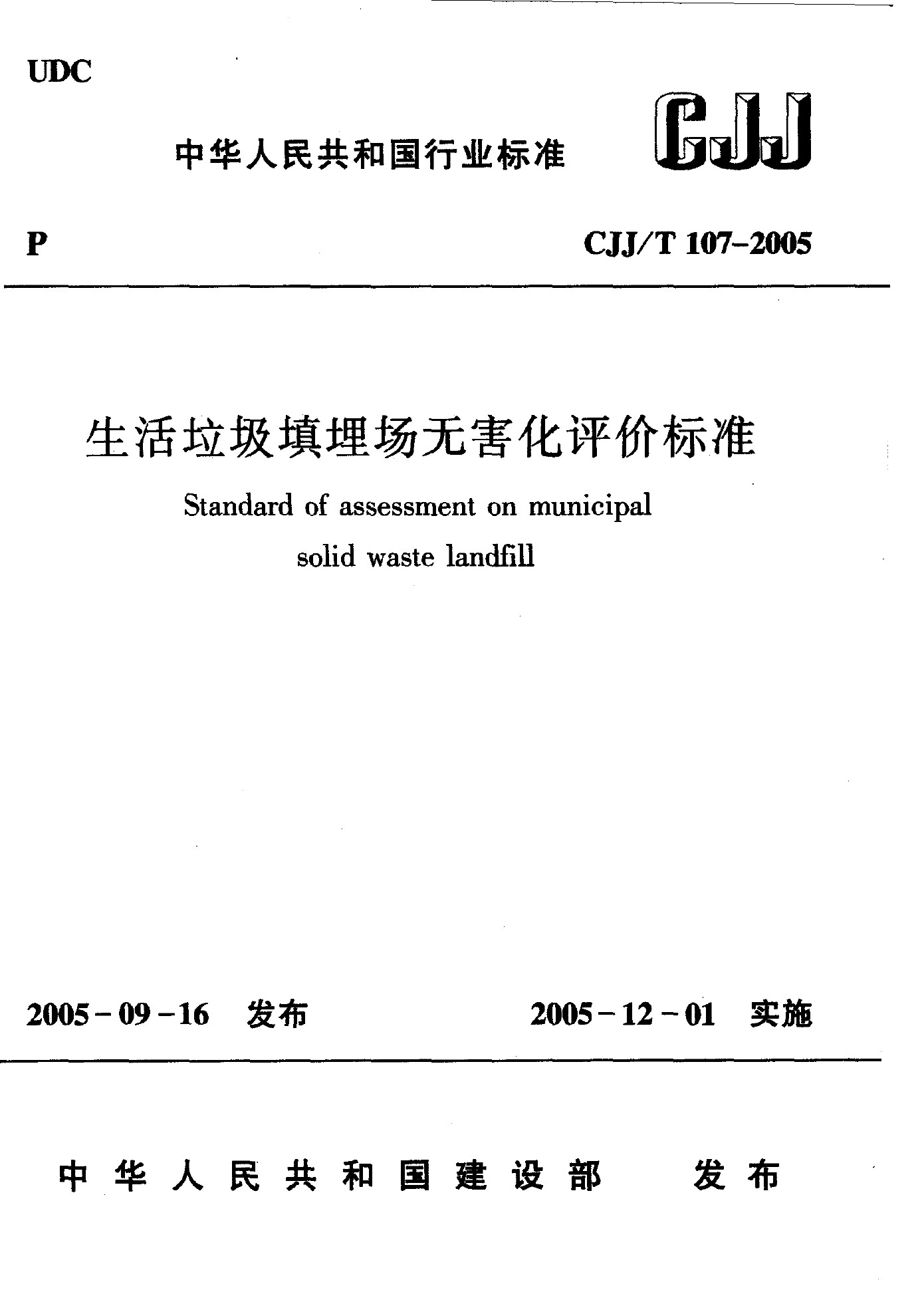 生活垃圾填埋場(chǎng)無(wú)害化評(píng)價(jià)標(biāo)準(zhǔn)(CJJ/T 107-2015)