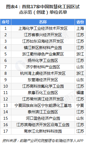 2018年11月30日,為落實國家相關產業(yè)政策,進一步推動我國化工園區(qū)智慧化建設進程,受工業(yè)和信息化部原材料工業(yè)司委托,中國石油和化學工業(yè)聯(lián)合公布“中國智慧化工園區(qū)試點示范(創(chuàng)建)單位”名單,評選出上?;瘜W工業(yè)經濟技術開發(fā)區(qū)、江蘇省泰興經濟開發(fā)區(qū)、江蘇如東沿海經濟開發(fā)區(qū)等17家園區(qū)為首批示范單位。