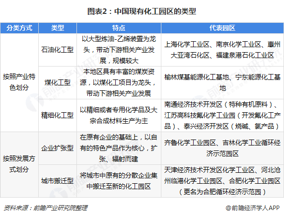 我國化工園區(qū)規(guī)模已經形成并結合地方的世紀情況形成了各自的產業(yè)特色和發(fā)展類型。按產業(yè)特色,我國化工園區(qū)大致可分為石油化工型、煤化工型、精細化工型三種類型;按發(fā)展方式分,我國化工園區(qū)大致可以分為企業(yè)擴張型、城市搬遷型兩種類型;各化工園區(qū)類型的特點和代表園區(qū)具體如下: