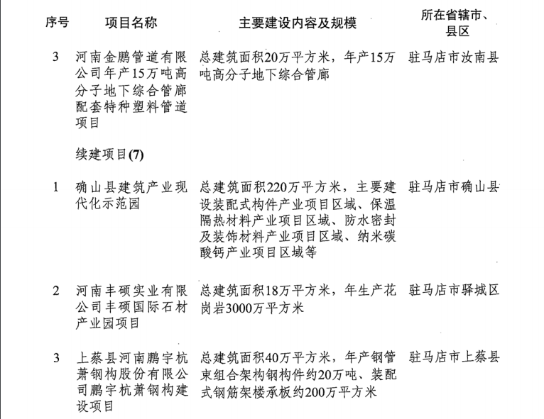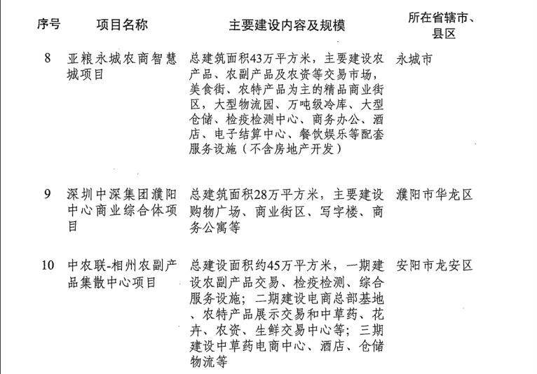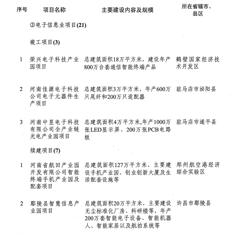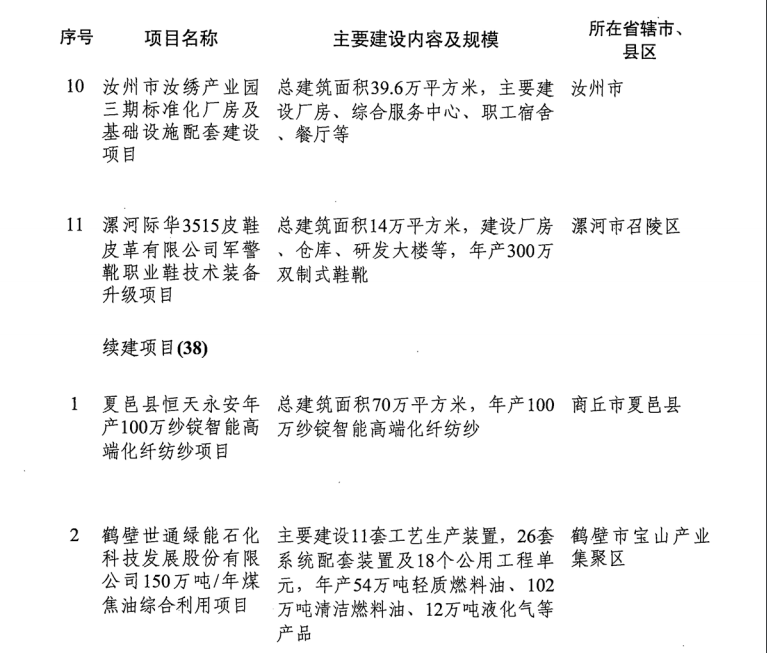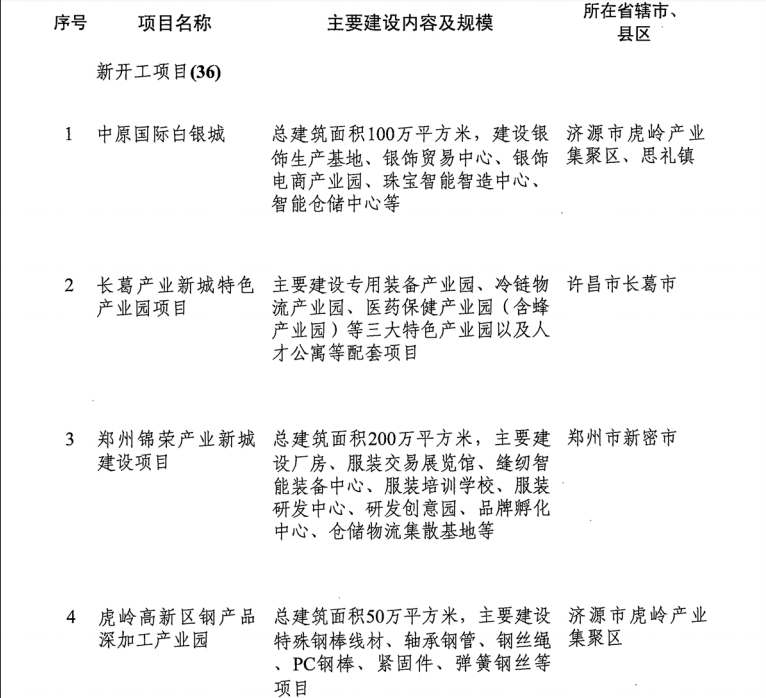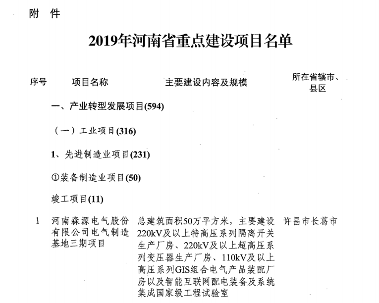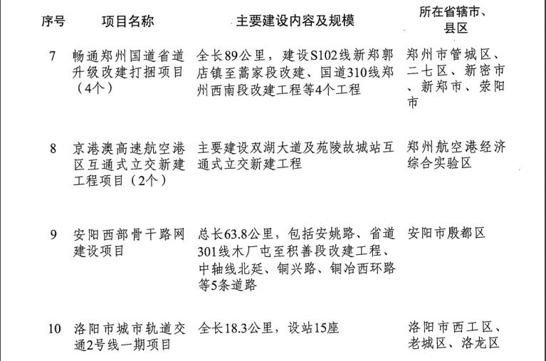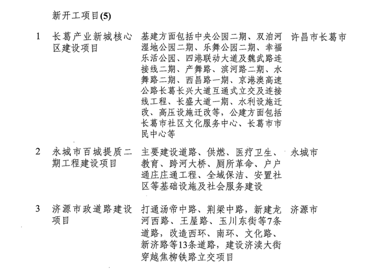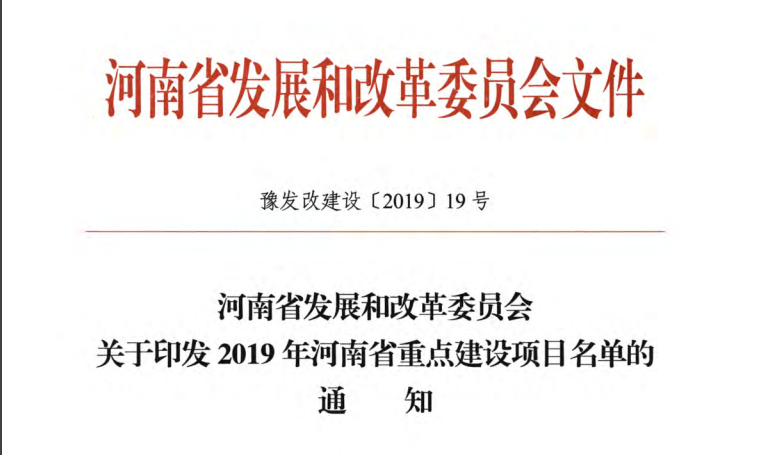 導(dǎo)讀:河南省發(fā)改委發(fā)布《關(guān)于印發(fā)2019年河南省重點建設(shè)項目名單的通知》。名單共列項目910個,總投資3.1萬億元,2019年計劃完成投資7939億元,涵蓋了產(chǎn)業(yè)轉(zhuǎn)型發(fā)展、創(chuàng)新驅(qū)動、基礎(chǔ)設(shè)施、新型城鎮(zhèn)化、生態(tài)環(huán)保、民生和社會事業(yè)六大領(lǐng)域18個行業(yè)。其中計劃竣工項目149個、續(xù)建項目433個、計劃新開工項目317個、前期項目11個。