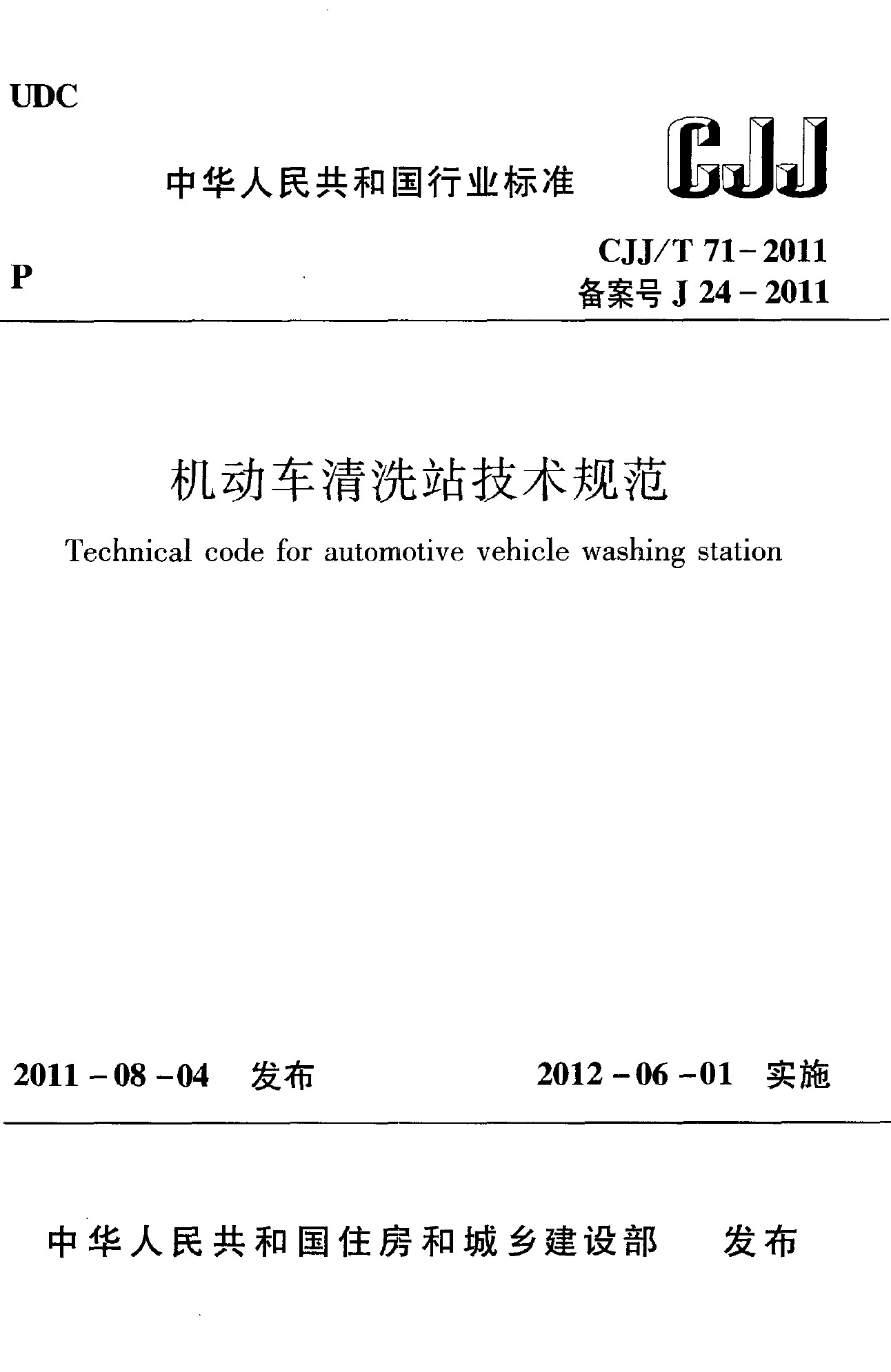 機(jī)動(dòng)車清洗站技術(shù)規(guī)范(CJJ/T 71-2011)