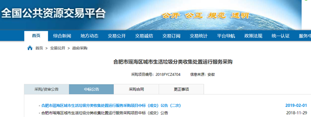 合肥市瑤海區(qū)城市生活垃圾分類收集處置運行服務采購項目發(fā)布二次中標公告,浙江聯(lián)運環(huán)境工程股份有限公司成為中標的社會資本方,中標金額為2094.96萬(3年服務期)。