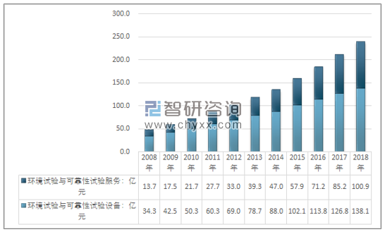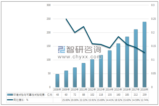 2008-2018年中國環(huán)境試驗與可靠性試驗市場規(guī)模情況