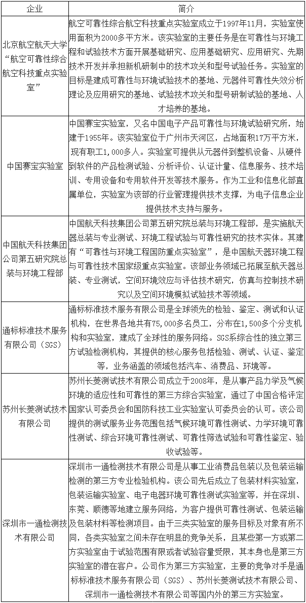環(huán)境試驗與可靠性試驗服務部分企業(yè)