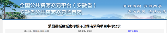 原標(biāo)題:徐工環(huán)境中標(biāo)5321萬安徽繁昌縣環(huán)衛(wèi)保潔項目